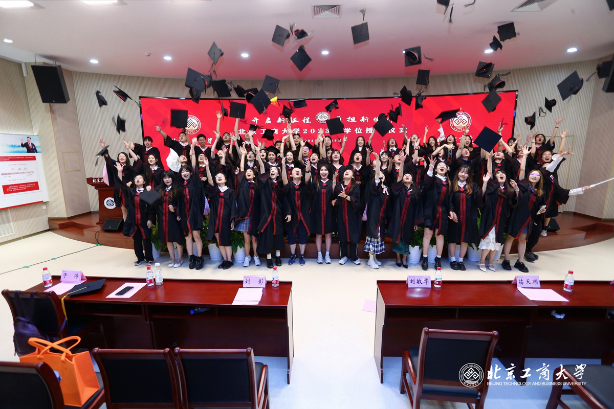 學(xué)院黨總支副書記于濤宣讀優(yōu)秀畢業(yè)生表彰決定。授予吳俊怡、 王怡輝、尚雅杰、鄭興潔 4名同學(xué)“北京市優(yōu)秀畢業(yè)生”榮譽(yù)稱號(hào),授予丁悅、周舒逸、吳泓迪、高怡晨、涂珂瑋、代鑫鵬、王軻7名本科生,趙子衿、楊歡2名研究生“北京工商大學(xué)優(yōu)秀畢業(yè)生”榮譽(yù)稱號(hào)。劉敏華副校長(zhǎng)為優(yōu)秀畢業(yè)生頒發(fā)證書。