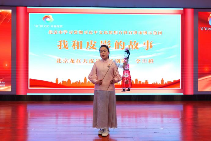 光影躍動續非遺。北京龍在天皮影藝術劇院演員李炟橙講述了自己從學習皮影、制作皮影,到講授皮影課的故事。她在學校里教學生皮影表演、唱腔、雕刻等,還一起創作了英文、法文、俄文等多語種皮影戲,努力讓中國皮影走向世界。她立誓要用皮影戲傳播中國好聲音,講述中國好故事!