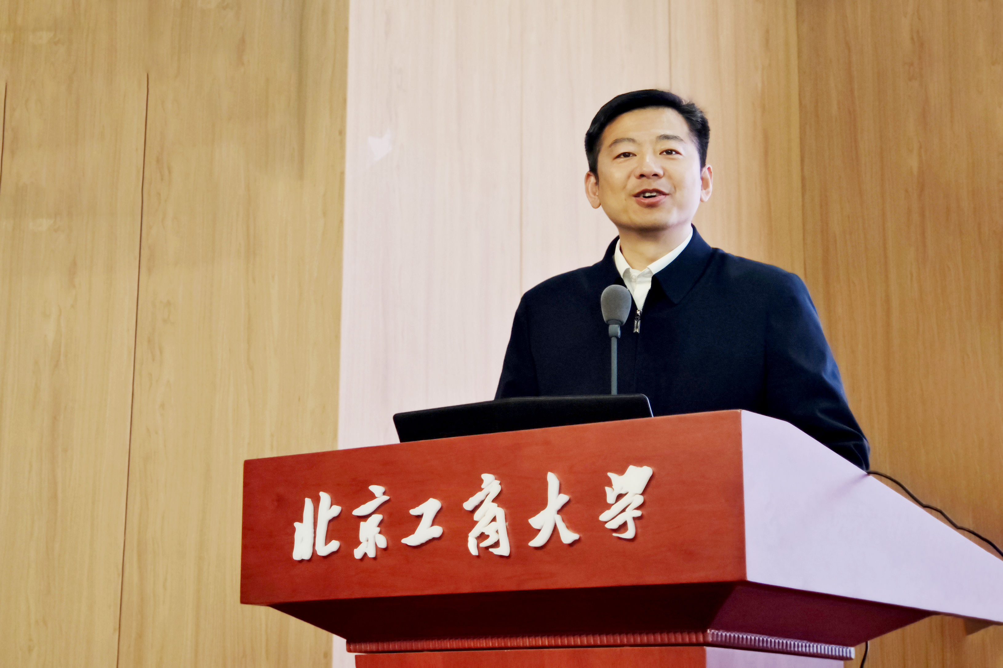 郭毅教授主持校外導(dǎo)師聘任儀式并講話。他向長(zhǎng)期支持經(jīng)濟(jì)學(xué)科建設(shè)、扎根育人育才一線的校內(nèi)外表示衷心的感謝,并期待學(xué)生在學(xué)校配備的校內(nèi)外資源的支持下,從產(chǎn)業(yè)、行業(yè)、實(shí)際崗位獲得新要求,使校園培養(yǎng)更加契合社會(huì)要求,成為合格有為的金融人才,為北京乃至全國(guó)經(jīng)濟(jì)社會(huì)的高質(zhì)量發(fā)展做出北工商貢獻(xiàn)。