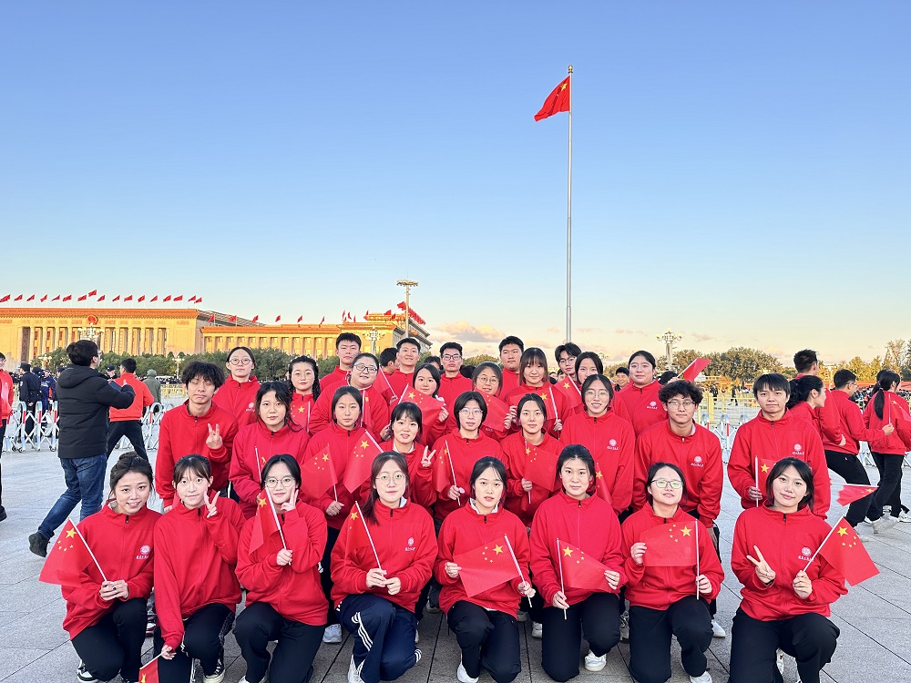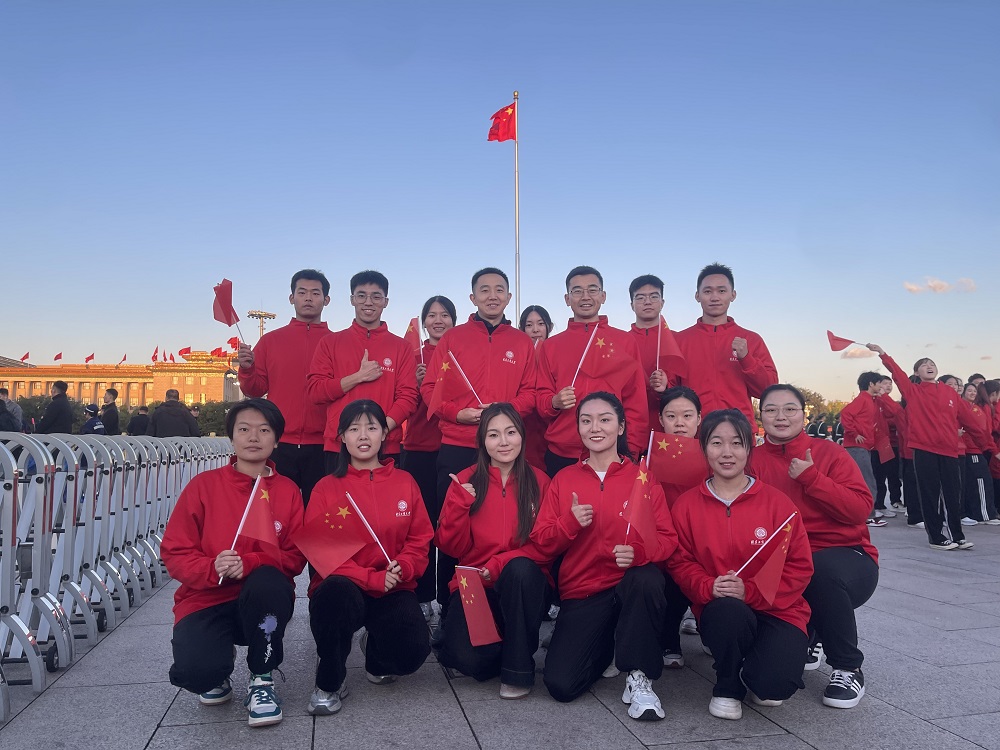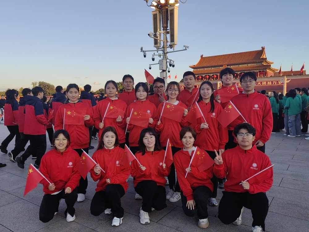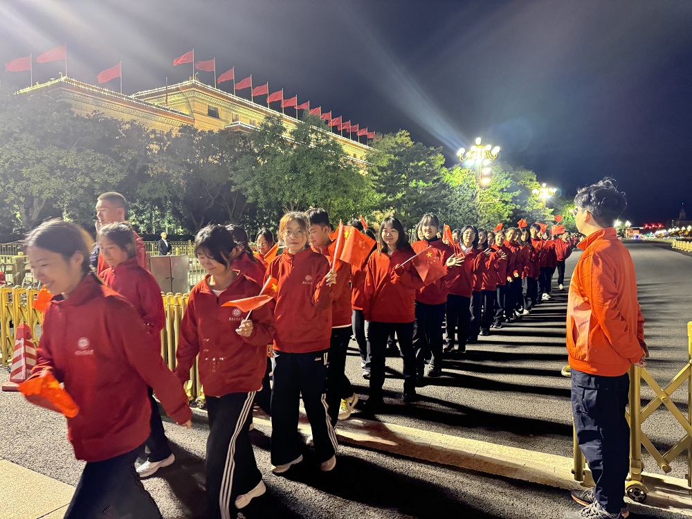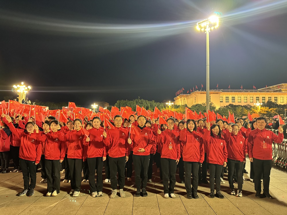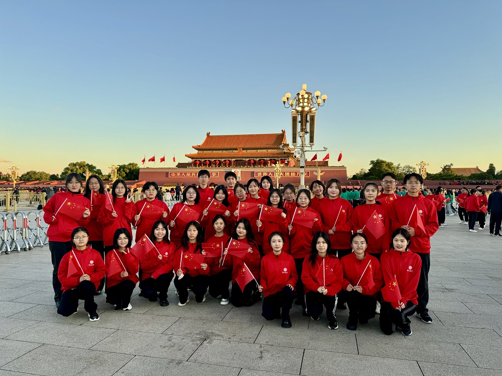 今年是中華人民共和國成立75周年,10月1日凌晨,我校188名師生代表來到天安門廣場,觀禮升國旗儀式,21名師生組成志愿者團隊,承擔活動現場的志愿服務和引導工作,開展沉浸式愛國主義教育活動,共同祝愿祖國繁榮昌盛、國泰民安。
