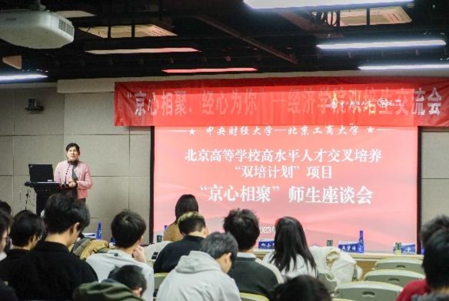 為進一步推進“三全育人”工作,落實“雙培計劃”雙校共育培養理念,增進雙培學生對母校的感情并提升其文化認同,12月6日下午,經濟學院赴中央財經大學沙河校區開展“京心相聚,經心為你”經濟學院雙培生交流會。學院黨委副書記李艷春、保險系副教授關晶、金融系副教授于明哲、教學秘書趙國友、2021級輔導員向小平、2022級輔導員李錦、2023級輔導員吳夢濤、中央財經大學保險學院2022級雙培輔導員周葳出席參加,2021、2022、2023級全體在校雙培生共百余人到場?;顒佑蓞菈魸⒗铄\主持。