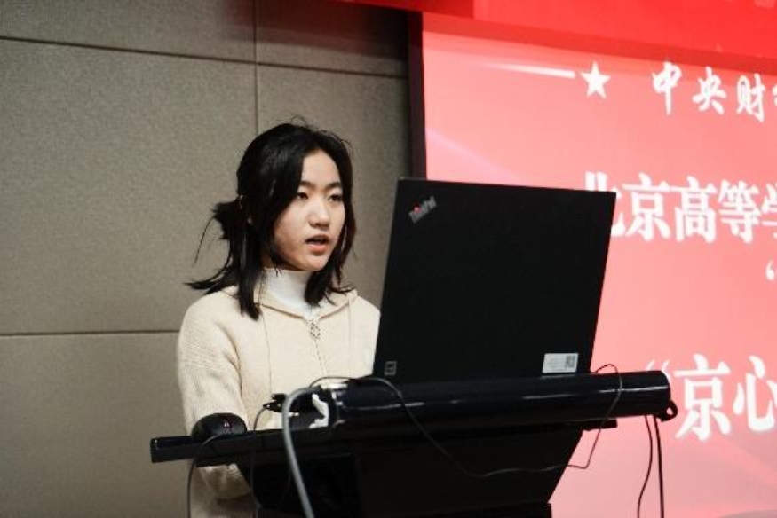 在學生代表發言環節,保險231班冀潔和金融232班張展赫結合自身在中財學習、生活和參加學生社團的經歷依次上臺分享,他們對中央財經大學和北京工商大學的精心培養和關愛深表感謝,號召大家以良好的精神狀態和飽滿的學習熱情備戰期末考試,取得優異成績。