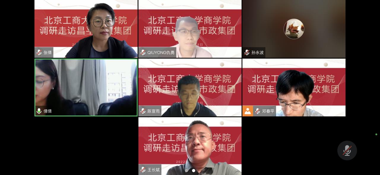 8月18日,商學院在線上對北京昌平市政控股集團有限公司(以下簡稱“昌平市政”)開展“訪企拓崗促就業”專項行動,學院黨委副書記張倩、副院長孫永波、工商管理系主任鄧春平、副主任仇勇、教師代表等參加調研。昌平市政黨委副書記張春蘋及人力資源部部長吳倩接待了調研團。