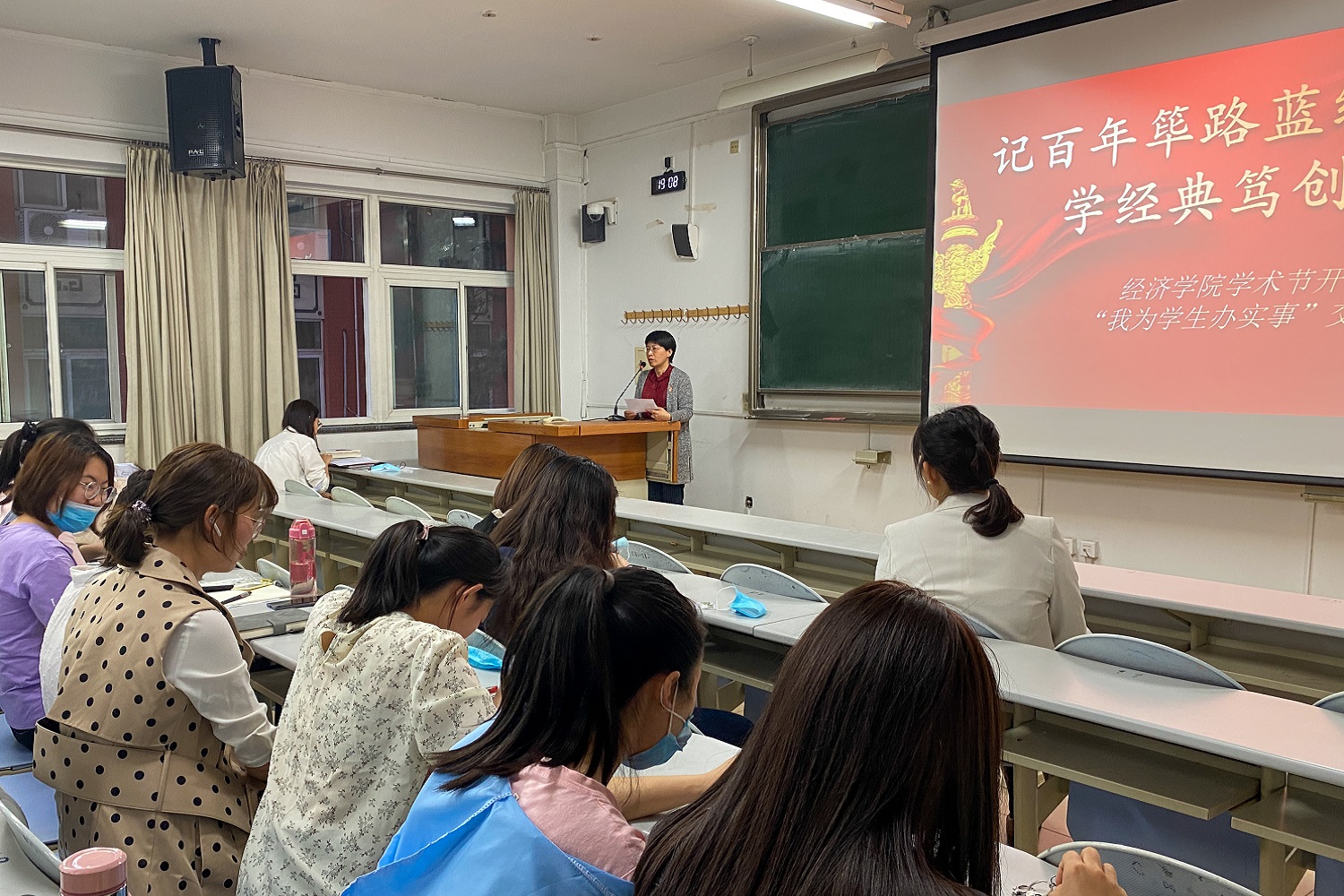 為積極營造良好的校園學術文化氛圍,促進學院研究生全面發展,5月13日,經濟學院“記百年篳路藍縷,學經典篤創新知”學術節開幕式暨“我為學生辦實事”交流分享會在阜成路校區召開。經濟學院黨委書記呂素香、副書記李艷春及50多名研究生參加了此次活動。