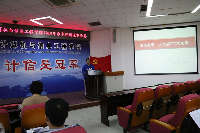 為進(jìn)一步加強(qiáng)學(xué)生支部建設(shè),深化學(xué)生黨員黨性教育,在大學(xué)生中積極培育和踐行社會主義核心價值觀,計信學(xué)院于11月30日組織全體學(xué)生黨員、預(yù)備黨員開展了主題為“重溫黨章,爭做模范”的專題培訓(xùn)。
