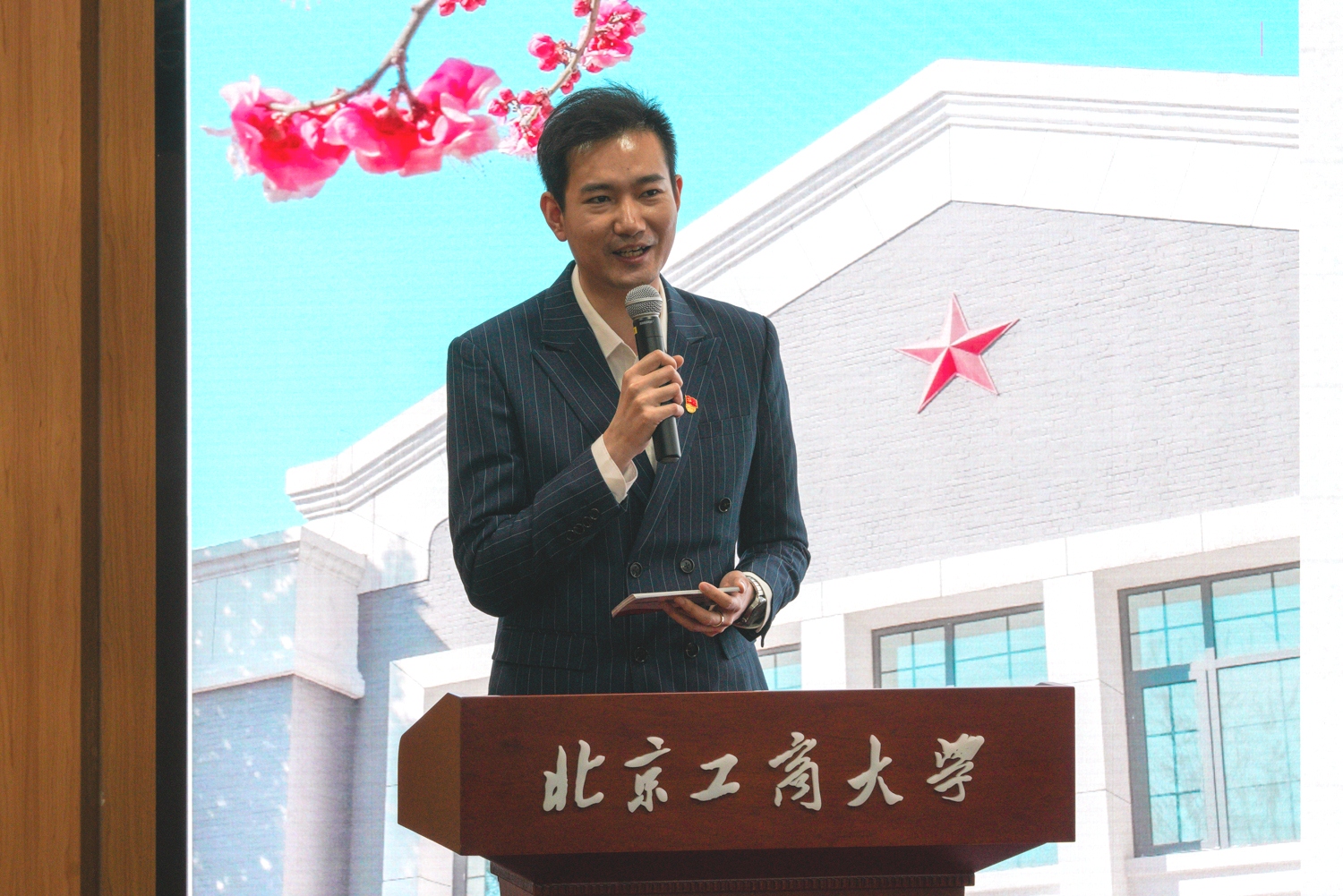 在研究生院李昀澄流暢自然的主持下,五名青年黨員聲情并茂地將書中的人物故事徐徐鋪展開來。人事處李昊哲誦讀了物理學家和教育家嚴濟慈79歲高齡時遞交的《入黨志愿書》。耄耋之年,壯心不已,這位成就斐然、德高望重的科學家用一生的探索,為自己找到了光榮的歸宿,其覺悟境界令人敬佩不已。學生處黨浩生動傳神地朗讀了一封家書《毛岸英致表舅》,信中毛岸英斷然拒絕了舅父想要在長沙謀取官職的不正當要求,烘托出毛岸英一心為公的人民立場和坦蕩無私的革命者形象。國際交流與合作處劉倩穎將美國著名作家和新聞記者埃德加?斯諾支持幫助中國的深厚情誼娓娓道來,從特定視角感受黨的百年艱辛和百年輝煌,同時學習如何向世界講好中國共產黨的故事。學校辦公室劉禹孜深情地講述了無產階級革命家、教育家、新中國高等教育的開拓者吳玉章先生的感人事跡,“創業難,守業更難,須知物力維艱,事事莫爭虛體面;居家易,治家不易,欲自我身作則,行行當立好規模”,將吳玉章先生的良好家風體現得淋漓盡致。黨風政風連著社風民風,作風建設只有進行時,沒有完成時,黨委宣傳部吳慧中深沉有力地朗讀了評論文章《八項規定改變中國》,昭示了解決大黨獨有難題的清醒和堅定,即始終保持自我革命的斗爭精神,不斷書寫“百年恰是風華正茂”的傳奇。
