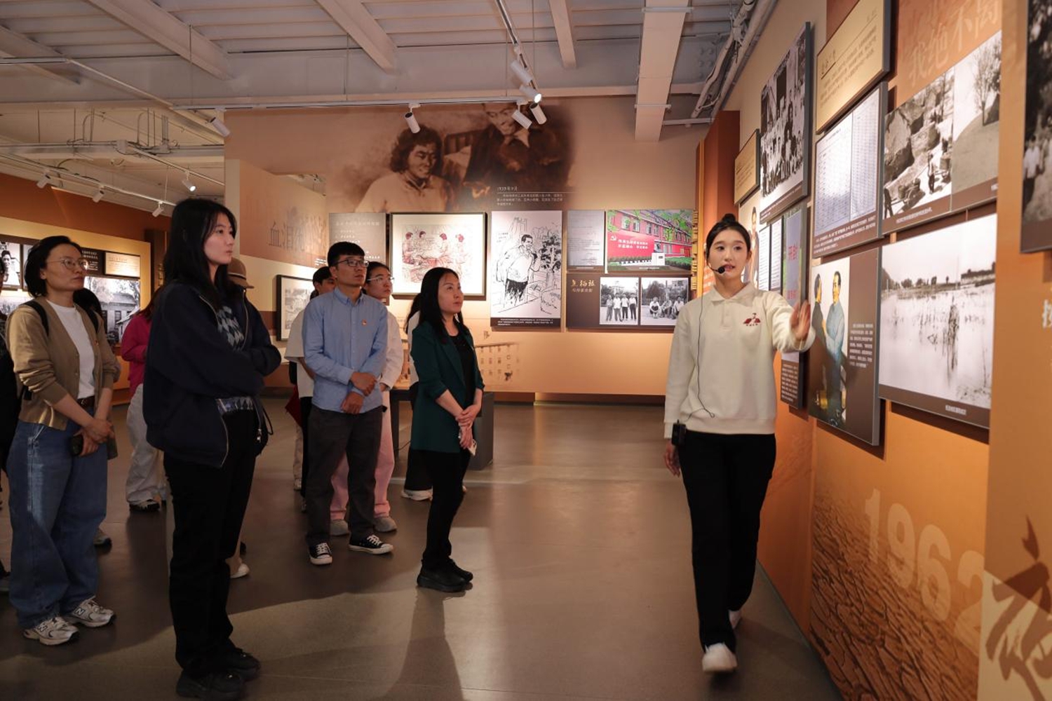 隨后,在講解員的引導下,師生進入《永恒的光輝——焦裕祿生平事跡》展廳區域參觀學習。展陳內容系統展現了焦裕祿同志親民愛民、艱苦奮斗、科學求實、迎難而上、無私奉獻的崇高精神。他關心群眾疾苦的赤子之心、與“三害”作斗爭的無畏意志、對實際問題的科學研判、在病重之際依然堅持調研一線的敬業擔當,無不深深感染著在場師生。展廳中的歷史細節喚起了大家深沉的情感共鳴,紛紛駐足凝視,低語交流,仿佛穿越時光,沉入那段為民謀福的奮斗歲月。