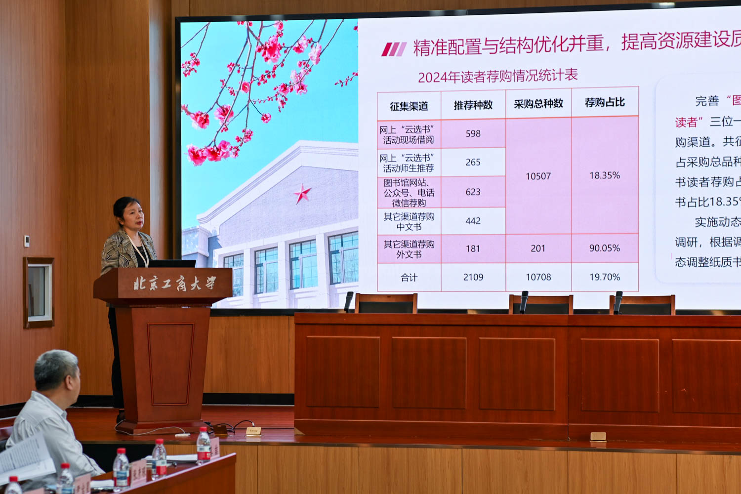 會議聽取了圖書館館長馬春暉關(guān)于2024年圖書館文獻(xiàn)信息資源建設(shè)情況的匯報。匯報以“精準(zhǔn)優(yōu)化、創(chuàng)新驅(qū)動,構(gòu)建‘工商一體化’理念導(dǎo)向下的文獻(xiàn)資源保障體系”為題,重點(diǎn)圍繞提高資源建設(shè)質(zhì)量、加大資源保障力度、收獲服務(wù)創(chuàng)新成績等方面展開,并從支撐服務(wù)學(xué)校發(fā)展戰(zhàn)略、學(xué)科建設(shè)需求等出發(fā)提出了2025年文獻(xiàn)資源建設(shè)重點(diǎn)工作。