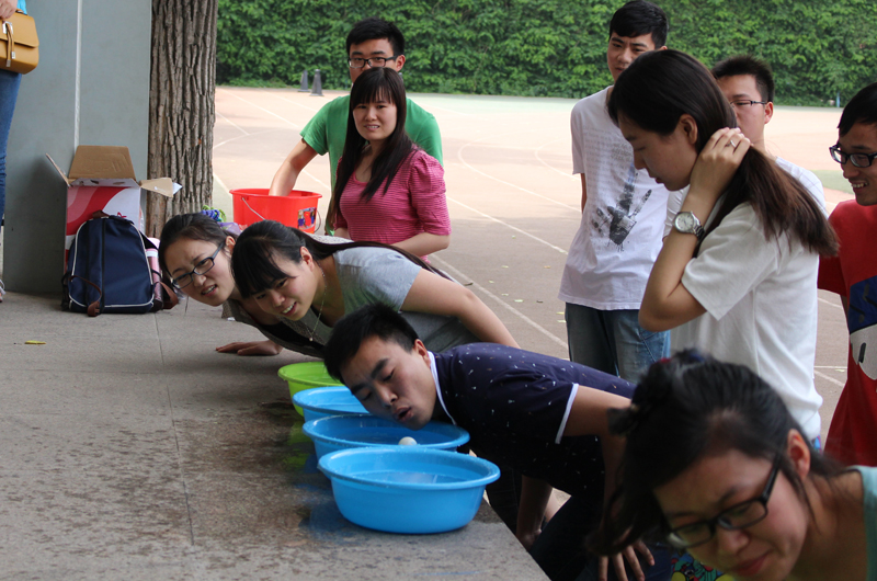 活動(dòng)由兩部分組成:比賽環(huán)節(jié)和游戲環(huán)節(jié)。比賽環(huán)節(jié)包括“你演我猜”、“乒乓小達(dá)人”、“倒水接力”和“心中的第六感”四個(gè)游戲;游戲環(huán)節(jié)則是當(dāng)下最流行的撕名牌大戰(zhàn)。活動(dòng)得到廣大研究生的積極響應(yīng),共有來自食品學(xué)院研一、研二及兄弟院系的8支參賽隊(duì)伍。在確保安全的前提下,秉著“友誼第一,比賽第二”的理念,參賽隊(duì)員在活動(dòng)中收獲快樂,收獲友誼。在“你演我猜”中,參賽選手相互配合,默契十足,在規(guī)定時(shí)間內(nèi)盡量多的完成猜詞;“乒乓小達(dá)人”中隊(duì)友之間協(xié)調(diào)配合,竭力完成比賽;而“倒水接力”則主要考驗(yàn)大家的體力、平衡力及團(tuán)隊(duì)協(xié)作能力,“心中的第六感”則更加考驗(yàn)團(tuán)隊(duì)合作。最后的撕名牌環(huán)節(jié)使現(xiàn)場氣氛達(dá)到高潮,隊(duì)與隊(duì)之間競爭激烈,同學(xué)們情緒高漲,笑聲掌聲不斷。