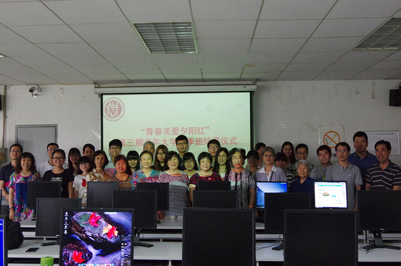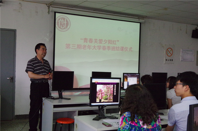 6月3日,由計信學院、離退休工作處、網絡中心聯合舉辦的 “青春關愛夕陽紅”老年大學2015年春季班的最后一講暨結業儀式在阜成路校區進行。離退休黨總支書記龐春生、計信學院黨總支副書記張凱偉及學生黨員講師、助教、老教師學員參加了結業儀式。