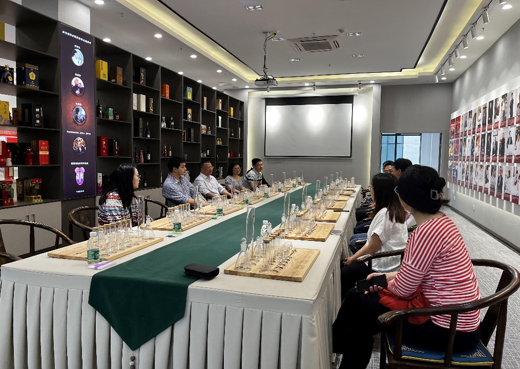 在白酒展示及品鑒室,鄭福平一行詳細聽取了中國白酒學院品酒室負責人李子健老師關于四川輕化工大學在白酒釀造領域的教學科研和服務社會等方面工作及取得的成績的介紹,并就如何結合雙方特色在課程教學、學科建設、人才培養等方面加強合作、推動雙方上水平、強特色、加速高質量發展等議題進行了深入交流座談。座談會上,中國白酒學院張利介紹了學院的教學科研及未來的發展方向,希望兩校進一步加強溝通和交流。鄭福平教授表示,四川輕化工大學擁有專業的釀酒中試基地以及智能化管理系統,為白酒釀造領域培養了大批行業人才,在白酒行業具有重要影響。兩校之間應發揮各自優勢,深化合作,共同進步。