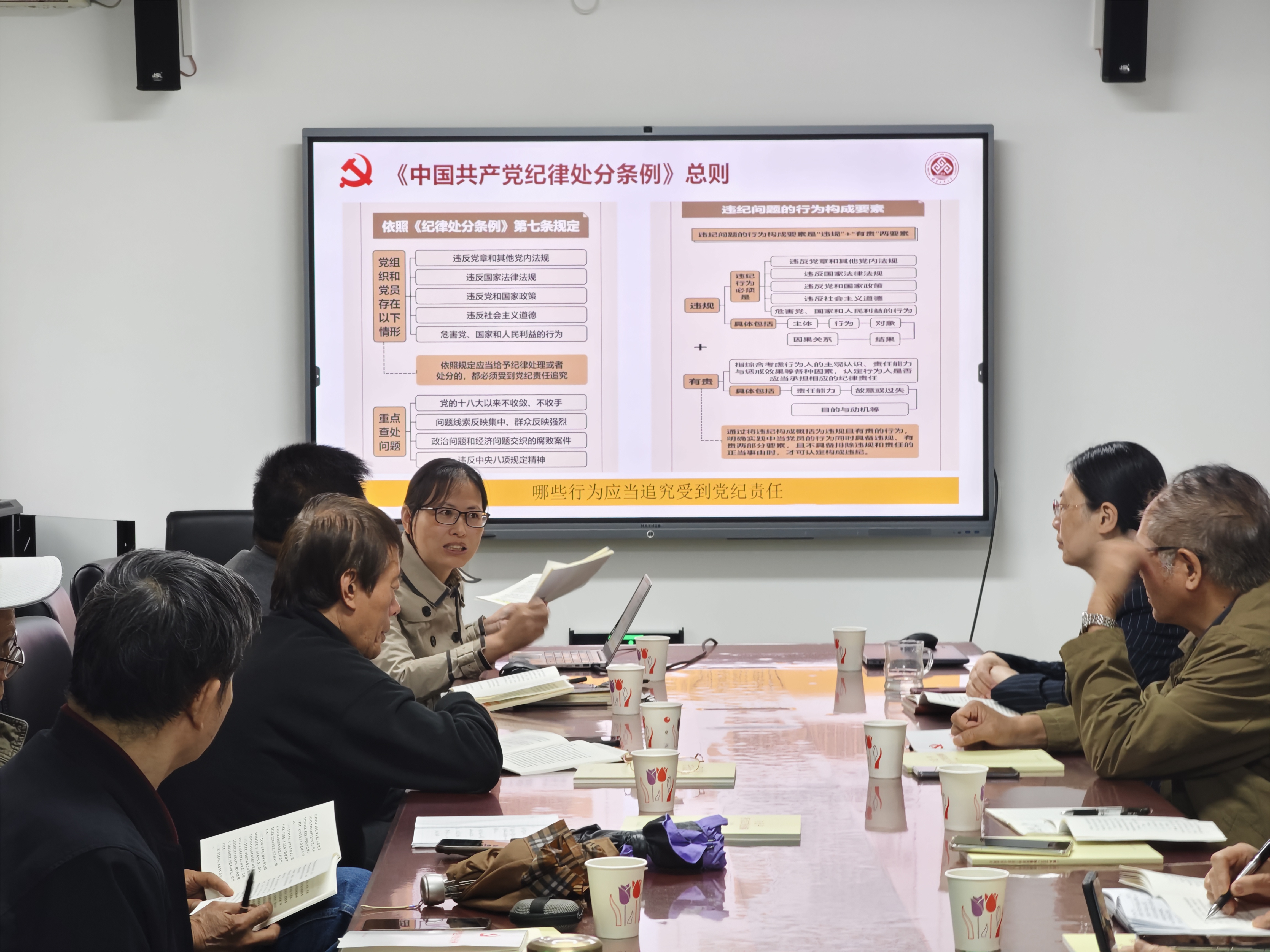 離退休工作部副部長夏本翠逐章逐條開展領學,并就重點內容結合案例等進行解讀和培訓,堅持原原本本學習,對于《條例》未修改的內容進行領讀溫故而知新,對于新修訂的內容逐字逐句進行研讀,解釋修訂內容的背景、內涵和意義,做到知其然更知其所以然,強調要牢牢把握黨的紀律建設的政治屬性和時代屬性,深入了解紀律處分運用規則、紀法銜接、違紀情形及處分等內容,在日常用黨規黨紀校正思想和行動,推動《條例》入腦入心;自覺做好表率帶頭作用,確保黨紀學習教育取得實實在在的成效。