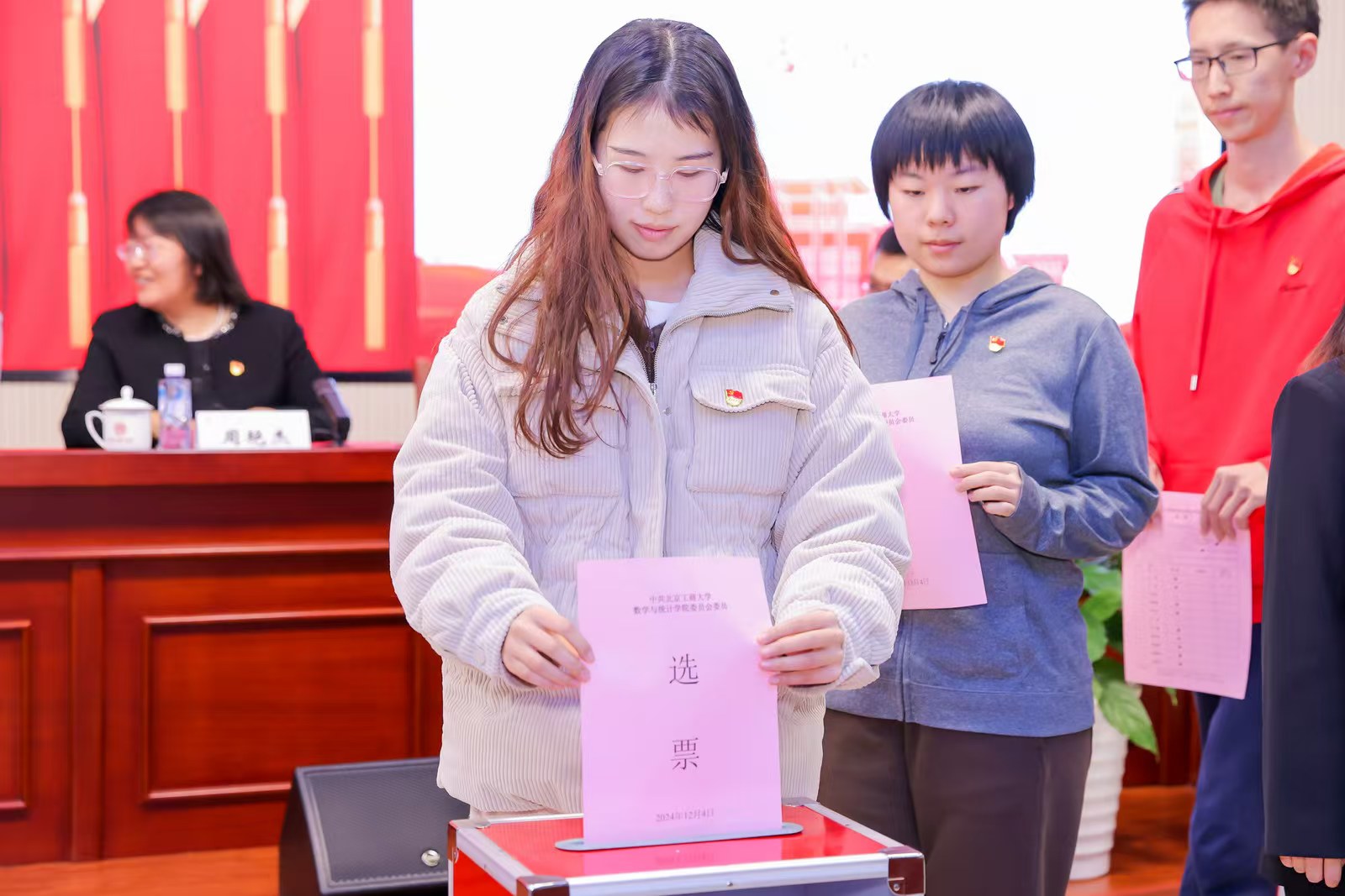 與會黨員認真履行權(quán)利,采取無記名投票差額選舉的辦法,選舉產(chǎn)生了數(shù)學與統(tǒng)計學院黨委新一屆黨委委員(以姓氏筆畫為序);王健(女)、王康、叢薪蓉(女)、畢平平(女)、李鑫、周艷杰(女)、黃雪源、梁新剛、寇明雯(女)。