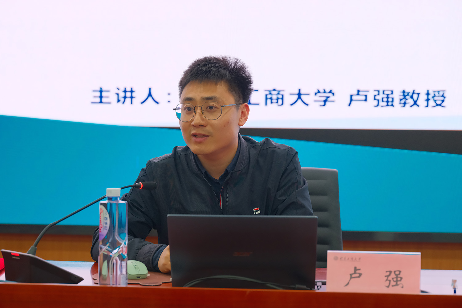 第二講的主題是數據收集、處理與Stata的實現,盧強以自身豐富的實證科研經驗,從宏觀、中觀和微觀的視角展開,由淺到深,把復雜的理論知識和理論與變量的關系、實證研究的一般過程、處理和分析的數據的類型等生動地講給在座的同學。盧強還仔細對比分析了過去和現在數據使用的區別,并說明了不同的數據來源的優缺點,帶領同學們在數據來源和分析中深入思考。在數據處理與Stata實現的具體操作上,盧強的博士生王鑫怡為同學們講解了具體的操作流程,并以案例的形式有條理的進行展示,將如何使用stata處理二手數據的流程清晰地呈現在同學們面前,具有非常強的實用性,現場的同學紛紛在自己的電腦上練習操作。