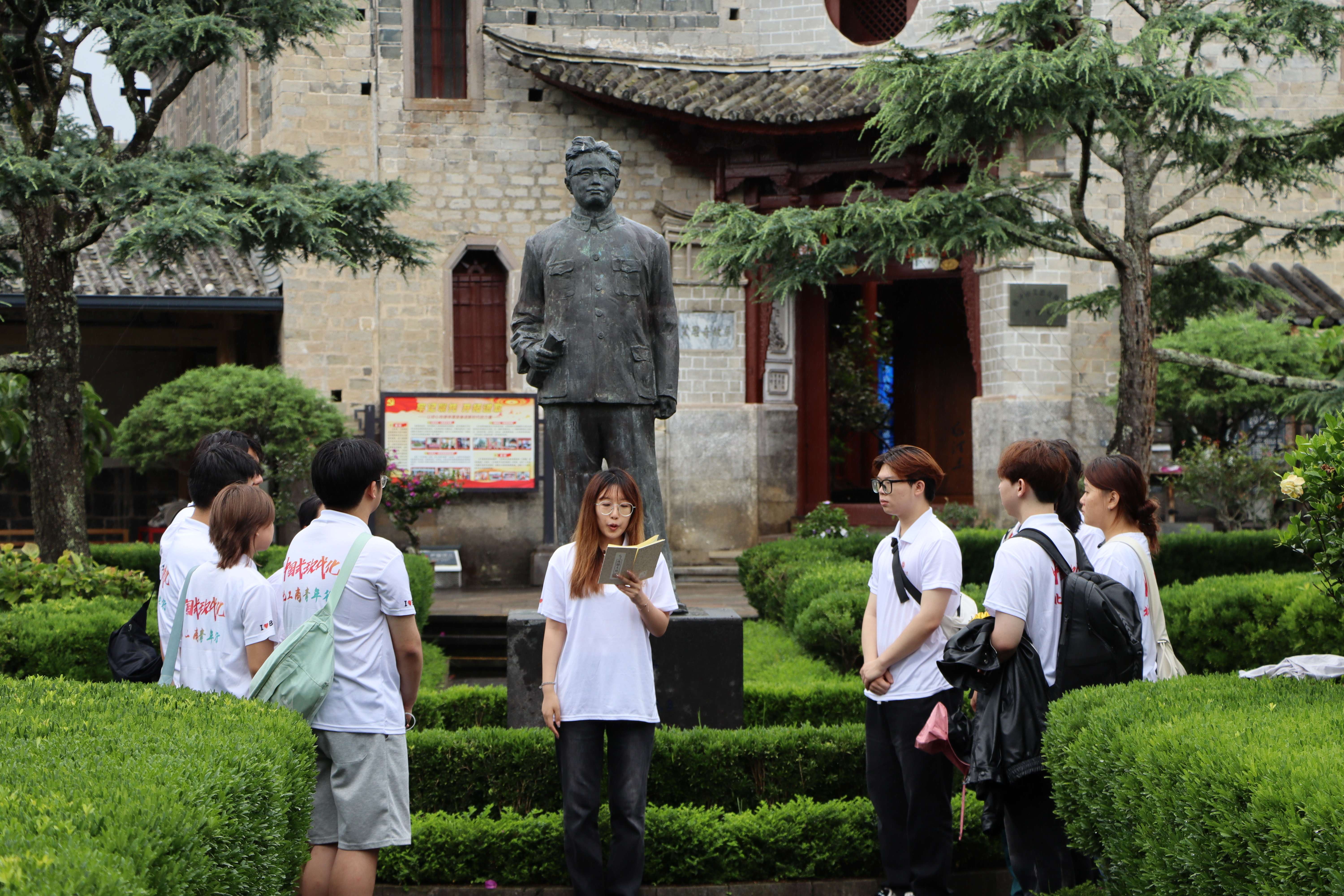 習(xí)近平總書記在和順古鎮(zhèn)考察調(diào)研時指出,“讓黨的創(chuàng)新理論飛入尋常百姓家”。在艾思奇故居,實(shí)踐團(tuán)仿佛穿越時空、跨越地域,與艾思奇先生進(jìn)行了一場思想的對話。實(shí)踐團(tuán)連線北京,與校團(tuán)委黨支部一同開展主題黨日活動,一同探尋馬克思主義中國化發(fā)展歷程。“傳承紅色基因”主題宣講著重介紹了馬克思主義中國化堅(jiān)持與時俱進(jìn)、堅(jiān)持理論聯(lián)系實(shí)際、永葆青春活力的突出特點(diǎn)。