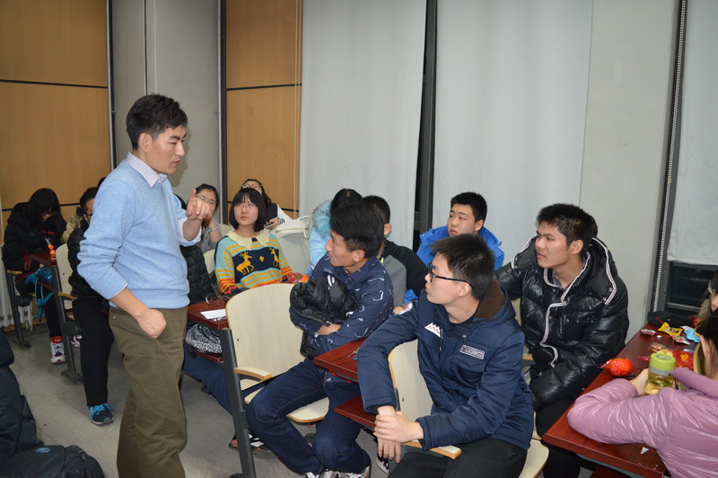 我校在中央財(cái)經(jīng)大學(xué)的“雙培”計(jì)劃涉及三個(gè)專(zhuān)業(yè),同學(xué)們上課時(shí)間不統(tǒng)一,活動(dòng)只能安排在晚上。老師們提前半小時(shí)到場(chǎng),與專(zhuān)職輔導(dǎo)員何瑋老師就參與“雙培”計(jì)劃學(xué)生的學(xué)習(xí)、生活情況進(jìn)行了溝通,與部分提前到場(chǎng)的學(xué)生進(jìn)行了交流?;顒?dòng)于19:30準(zhǔn)時(shí)開(kāi)始,保險(xiǎn)學(xué)、精算、互聯(lián)網(wǎng)金融三個(gè)專(zhuān)業(yè)共45名參與雙培計(jì)劃的同學(xué)全員準(zhǔn)時(shí)到齊。