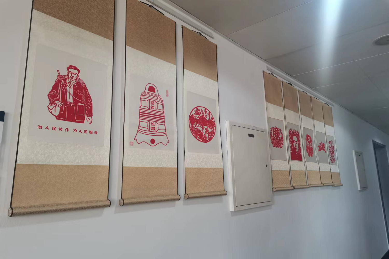 剪紙作品展由學院黨委、分工會精心謀劃,在學院分工會委員馬飛的組織帶領下,教職工利用午休時間剪刻。作品傳統民間紙形式充分展示了全國人民在中國共產黨的領導下,為實現第二個百年奮斗目標,實現中華民族偉大復興中國夢的決心和信心;體現了新時代、新精神、新風貌、新成就