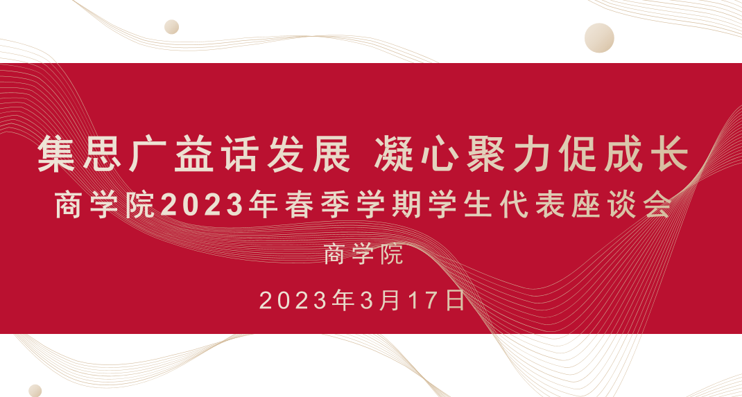 為切實把握學生所需所想和急難愁盼,引導學生做好發展規劃,力促形成優良學風,商學院于3月17日中午12:30以“集思廣益話發展 凝心聚力促成長”為主題舉行本科學生代表座談交流會。學院黨委副書記張倩、輔導員杜美涵、王琳菲、程鈺以及10名各年級學生代表參會,會議由輔導員趙春燕主持。
