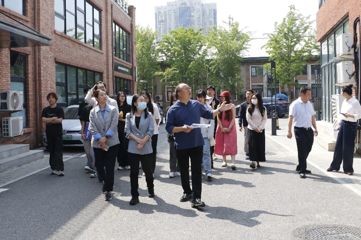 活動伊始,在園區(qū)總經(jīng)理黃玲海的陪同下,學(xué)院師生代表實(shí)地走訪了園區(qū)中頤文投、賽恩傳媒,了解IP設(shè)計、文化傳媒運(yùn)營等產(chǎn)業(yè)全流程,并為學(xué)生提供簡歷提交渠道。通過對園區(qū)景觀建筑及公共文化空間的講解,同學(xué)們近距離了解了園區(qū)在“文化+科技、文化+互聯(lián)網(wǎng)、文化+服務(wù)”等方面的產(chǎn)業(yè)圈布局,展現(xiàn)藝術(shù)設(shè)計與城市更新的深度融合,為學(xué)生提供“從學(xué)習(xí)到實(shí)踐”的文藝設(shè)計體驗(yàn)。