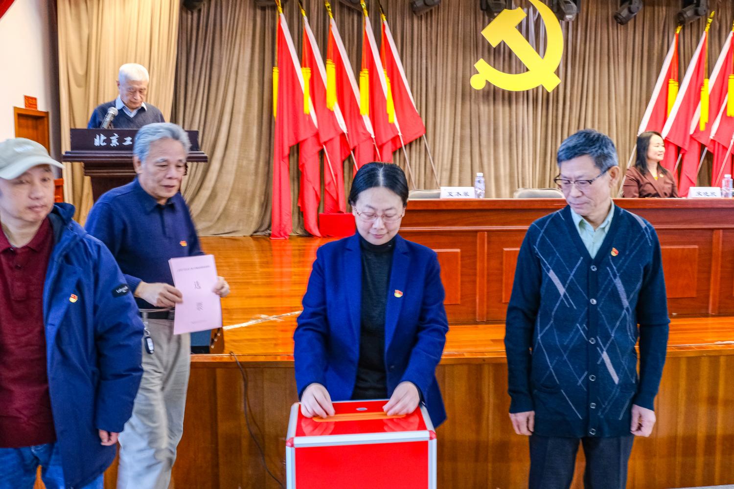 離退休工作處副處長夏本翠做黨費收繳、使用和管理情況的報告。全體黨員代表審議并通過了兩個報告以及委員候選人名單,大會選舉辦法,監票人、總監票人名單。