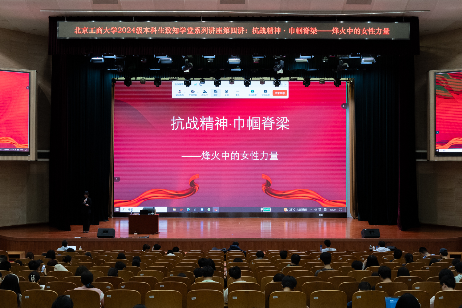 2025年4月17日,北京工商大學良鄉(xiāng)校區(qū)A報告廳開展2025年“致知學堂”系列講座第四講:抗戰(zhàn)精神·巾幗脊梁——烽火中的女性力量。中國人民抗日戰(zhàn)爭紀念館講解員、助理館員王金金從抗戰(zhàn)前線、隱秘戰(zhàn)線、文化抗戰(zhàn)和國際支援四個維度解析女性抗戰(zhàn),幫助同學們了解女性在抗戰(zhàn)中的角色,感受跨越時空的女性力量。