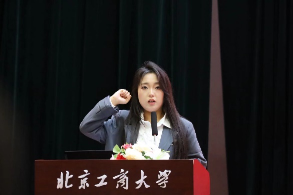 金融工程232班姜楠作為新生代表發(fā)言。她認(rèn)為,新時代的青年是祖國的未來,應(yīng)堅定自己的理想信念,把個人的理想追求融入黨和國家事業(yè)之中,在“求真、立德、勤奮、創(chuàng)新”的校訓(xùn)教誨下,持新軔之尺,破風(fēng)未知。