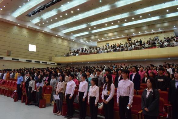 大會在雄壯的國歌聲中拉開帷幕。本次開學(xué)典禮共分為三個篇章:《如約而至 開啟新篇章》《踔厲奮發(fā) 奮進(jìn)新時代》及《青春啟航 逐夢新征程》。