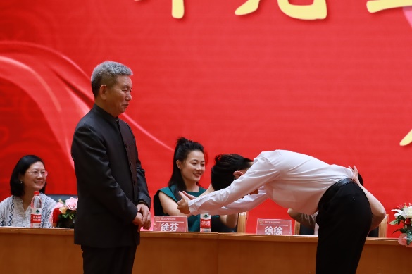 “禮”是中國傳統(tǒng)文化的核心,我國素有“禮儀之邦”之稱,講究尊師重道,注重拜師禮儀。在本次開學(xué)典禮的拜師儀式中,研究生代表依次向鯤鵬榮譽(yù)導(dǎo)師行敬茶禮、插手禮和獻(xiàn)花禮,表達(dá)最誠摯的敬意與感謝。師徒共進(jìn)、薪火相傳,嚴(yán)肅而莊重的拜師儀式是經(jīng)濟(jì)學(xué)院尊師重道的生動體現(xiàn)。