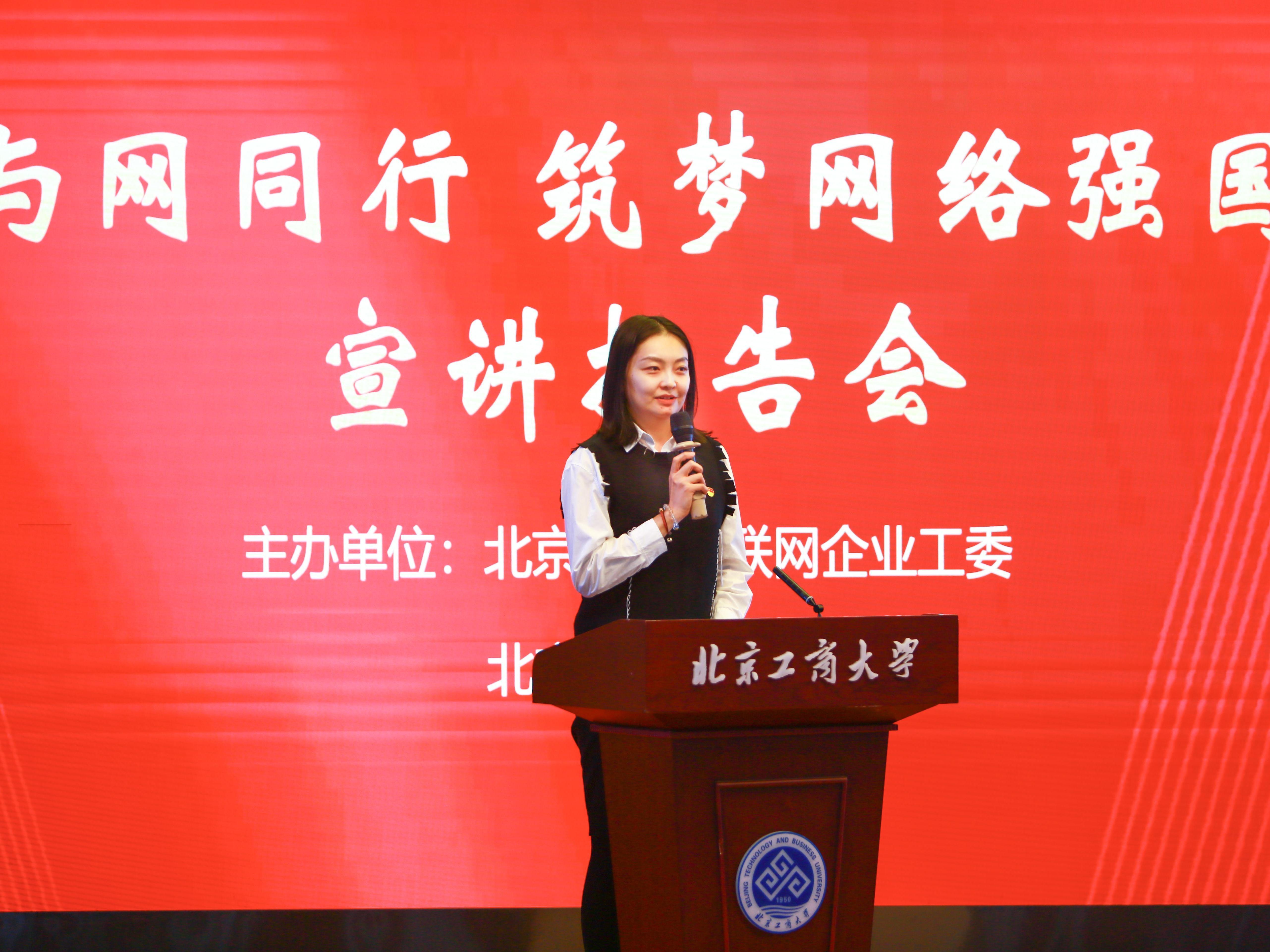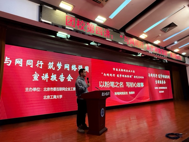 為貫徹落實(shí)黨的二十屆三中全會精神,深入學(xué)習(xí)習(xí)近平總書記關(guān)于網(wǎng)絡(luò)強(qiáng)國的重要思想,11月27日,北京市委互聯(lián)網(wǎng)企業(yè)工委與我校聯(lián)合舉辦“與網(wǎng)同行 筑夢網(wǎng)絡(luò)強(qiáng)國”宣講報(bào)告會,7位來自互聯(lián)網(wǎng)企業(yè)一線的宣講員結(jié)合自身工作實(shí)踐和所見所聞,談感受、道收獲、話未來,充分展現(xiàn)了互聯(lián)網(wǎng)人在創(chuàng)新創(chuàng)業(yè)、社會轉(zhuǎn)型、國際交往中的積極探索和生動實(shí)踐。市委互聯(lián)網(wǎng)企業(yè)工委組織三處一級調(diào)研員史宜會、我校團(tuán)委書記單紫薇、團(tuán)委干部蔡皓宇、史騏瑋以及青馬班-星火初級團(tuán)校全體學(xué)員參加報(bào)告會。此次報(bào)告會也作為青馬班-星火初級團(tuán)校的重要一課開展。
