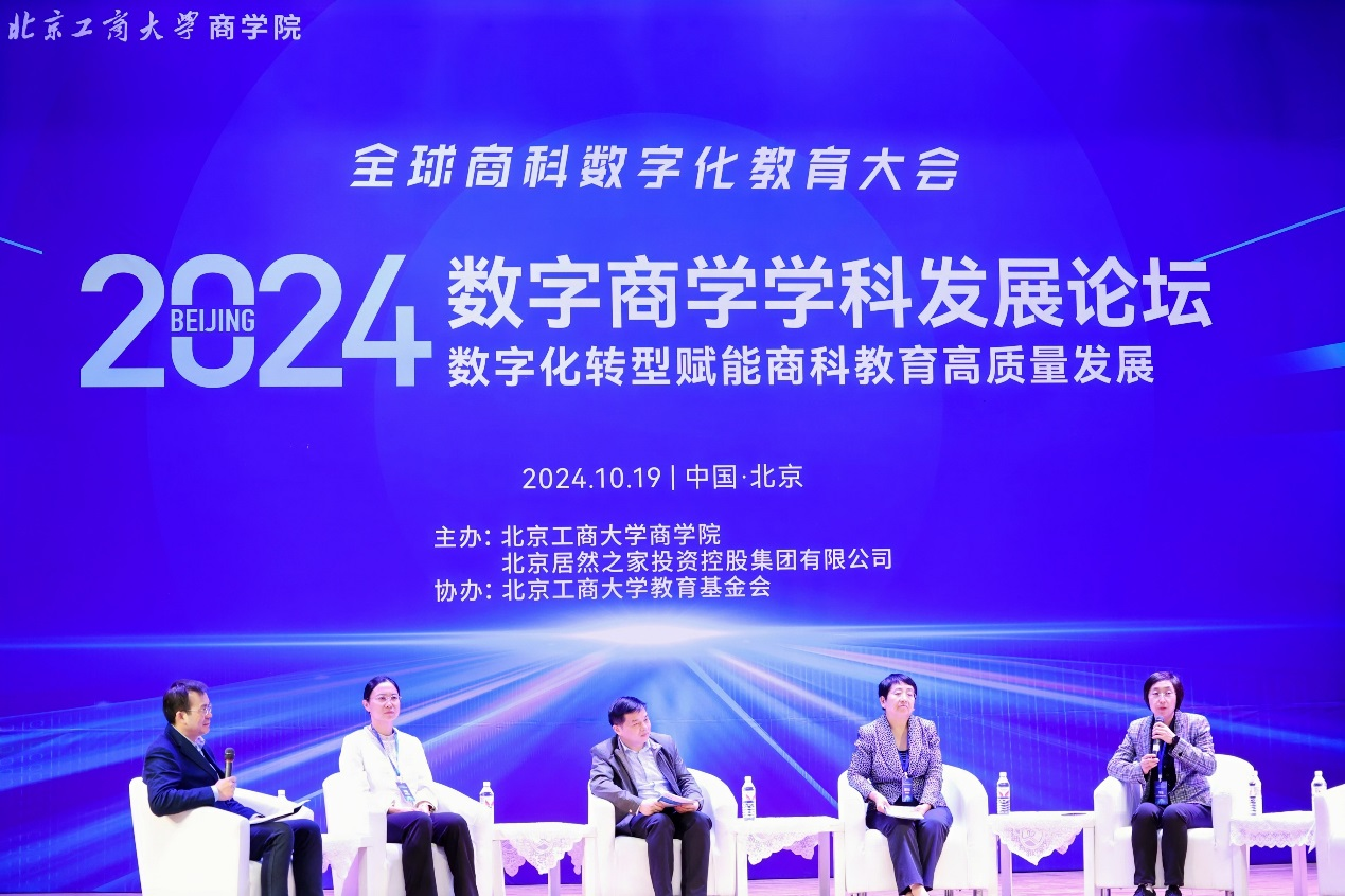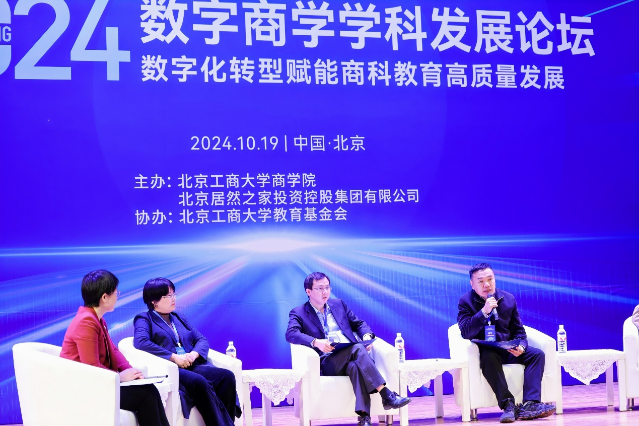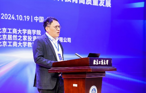 10月19日,由北京工商大學(xué)商學(xué)院、北京居然之家投資控股集團(tuán)有限公司主辦,北京工商大學(xué)教育基金會(huì)協(xié)辦的數(shù)字化轉(zhuǎn)型賦能商科教育高質(zhì)量發(fā)展論壇在阜成路校區(qū)舉辦。本次論壇匯聚了兄弟高校專家學(xué)者、行業(yè)專家、期刊主編、校友及企業(yè)代表,共同探討數(shù)字商科學(xué)科建設(shè)與人才培養(yǎng)。論壇分為開幕式、主旨演講和圓桌論壇三個(gè)環(huán)節(jié)。會(huì)議開幕式由商學(xué)院院長何玉潤教授主持。