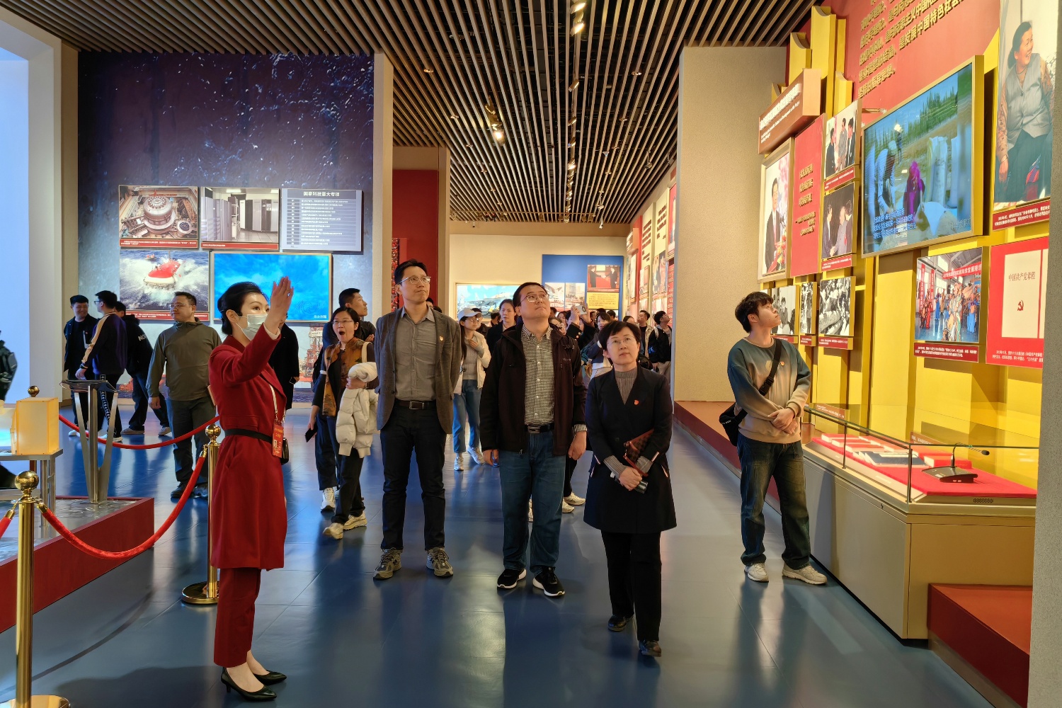 中國共產黨歷史展覽館以時間線為軸,按照“站起來、富起來、強起來”的歷史脈絡,將黨史分為“建立中國共產黨,奪取新民主主義革命偉大勝利”“成立中華人民共和國,進行社會主義革命和建設”“實行改革開放,開創和發展中國特色社會主義”“推進中國特色社會主義進入新時代,全面建成小康社會,開啟全面建設社會主義現代化國家新征程”四個階段,全景式展現中國共產黨波瀾壯闊的百年歷程。