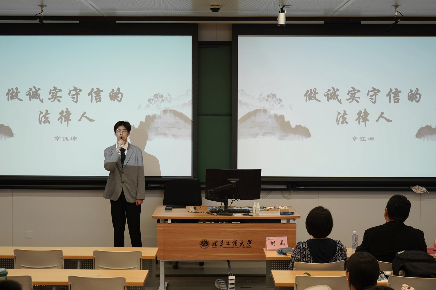 為深入學習宣傳貫徹黨的二十大精神,強化學生誠信意識,營造誠信為本的校園文化氛圍,法學院于4月19日下午舉行了誠信教育演講比賽。學院黨委副書記劉晶、團委書記王安瀾、專職組織員周升順出席比賽并擔任評委,11名同學參賽,110余名同學到場聆聽。
