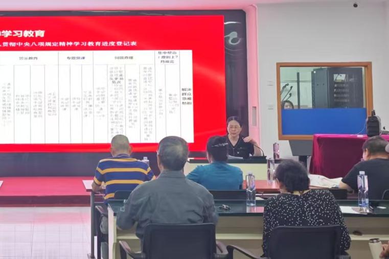離退休黨委書記王紅英講授深入貫徹中央八項規定精神學習教育專題黨課