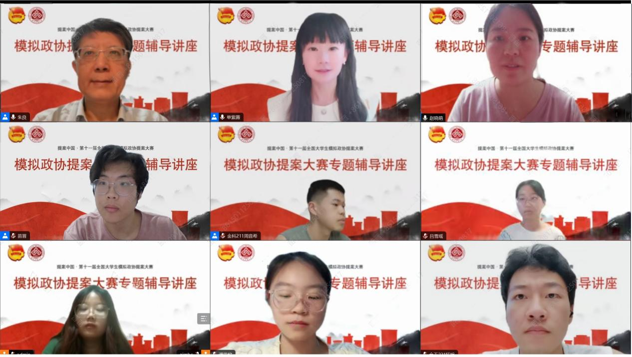 為深入學習宣傳貫徹黨的二十大精神,引導廣大青年有序參與社會主義民主政治實踐,指導參與全國大學生模擬提案大賽的同學們進一步了解政協、優化提案,8月3日,校團委組織開展模擬政協提案大賽專題培訓會。九三學社中央參政黨理論研究中心副主任、北京市人民政協理論與實踐研究會理事朱良作為主講嘉賓為師生們帶來精彩報告。學校團委書記單紫薇、團委干部趙曉萌、各學院參賽師生線上參與了培訓會。