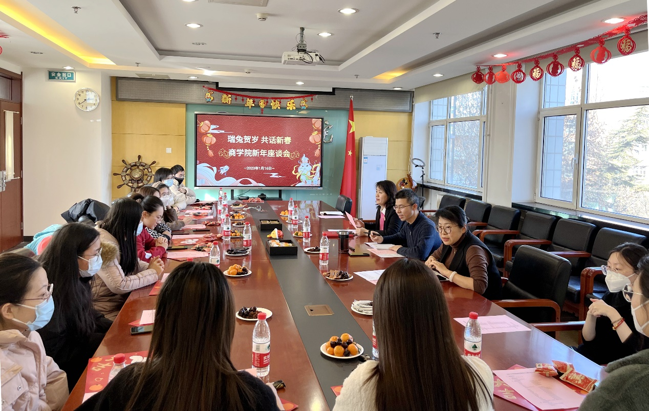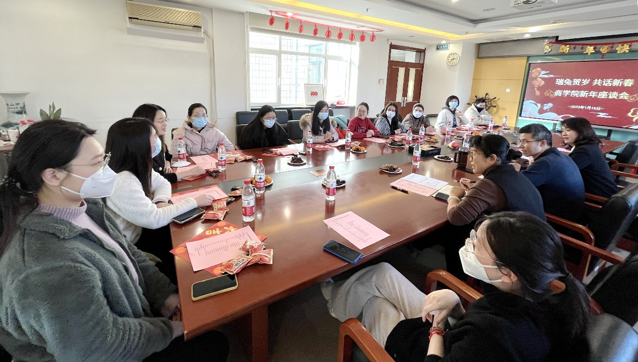 共話新春、共享祝福,獻(xiàn)計(jì)發(fā)展、共促成長(zhǎng)。1月16日下午,商學(xué)院組織寒假留校過節(jié)學(xué)生舉行“瑞兔賀歲 共話新春”迎新春座談會(huì)。學(xué)院黨委書記張春萍、學(xué)校研究生院院長(zhǎng)兼商學(xué)院院長(zhǎng)毛新述、學(xué)院黨委副書記張倩、輔導(dǎo)員馬珂、張欣宇及12名留校過節(jié)本、碩、博學(xué)生參加座談會(huì)。會(huì)議由學(xué)院黨委副書記張倩主持。