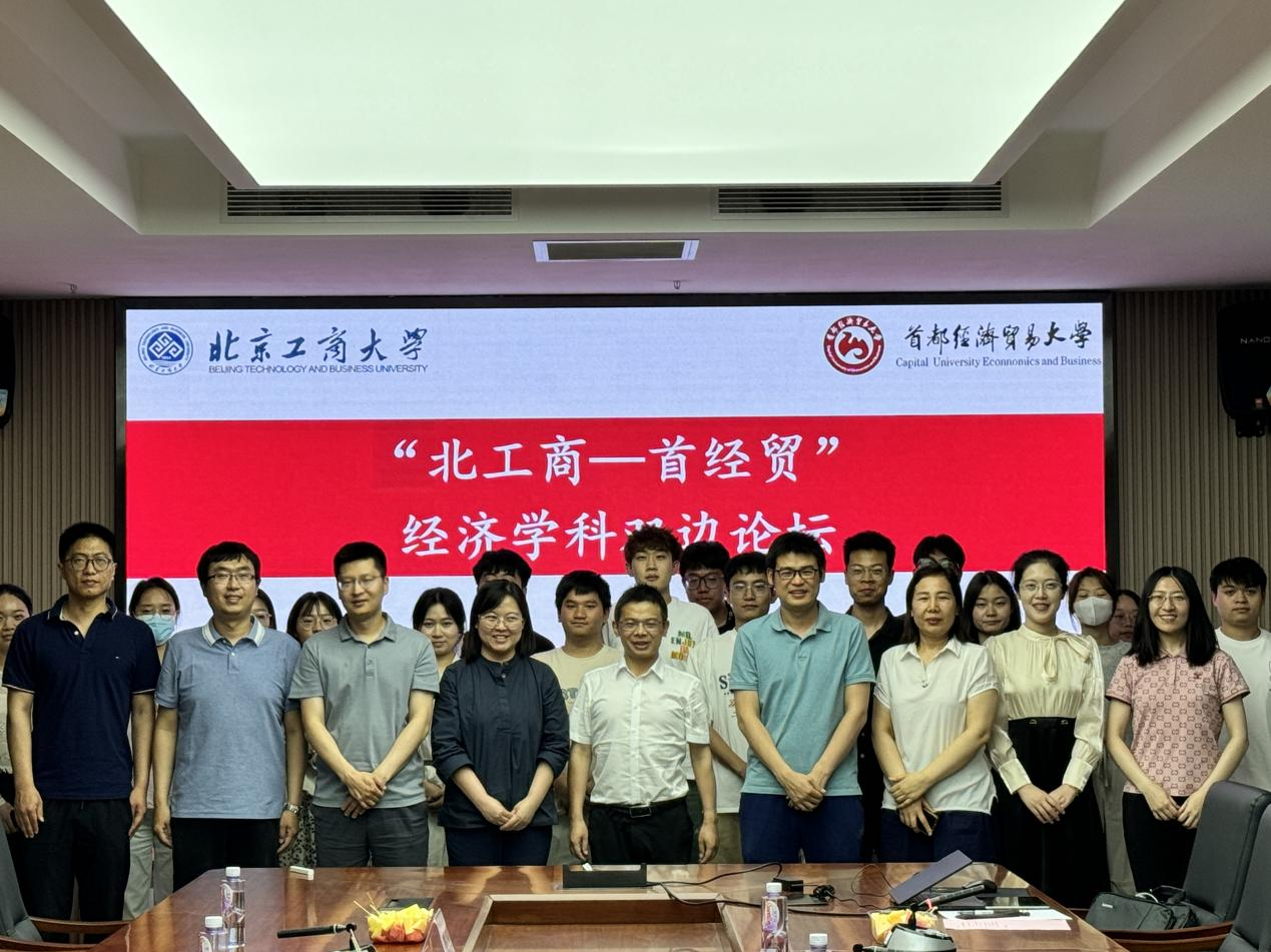 5月14日晚,“北工商-首經貿”經濟學科雙邊論壇在北京工商大學良鄉主校區舉辦。首都經濟貿易大學經濟學院院長杜雯翠教授、副院長杜鵬程教授、系主任王一子副教授、教師李興申、張蒙,北京工商大學經濟學院執行院長詹新宇教授、副院長許敬軒副教授、經濟系主任陳真玲教授、金融系王愛萍副教授、經濟系崔怡副教授和學院20余位研究生參加此次論壇交流活動。