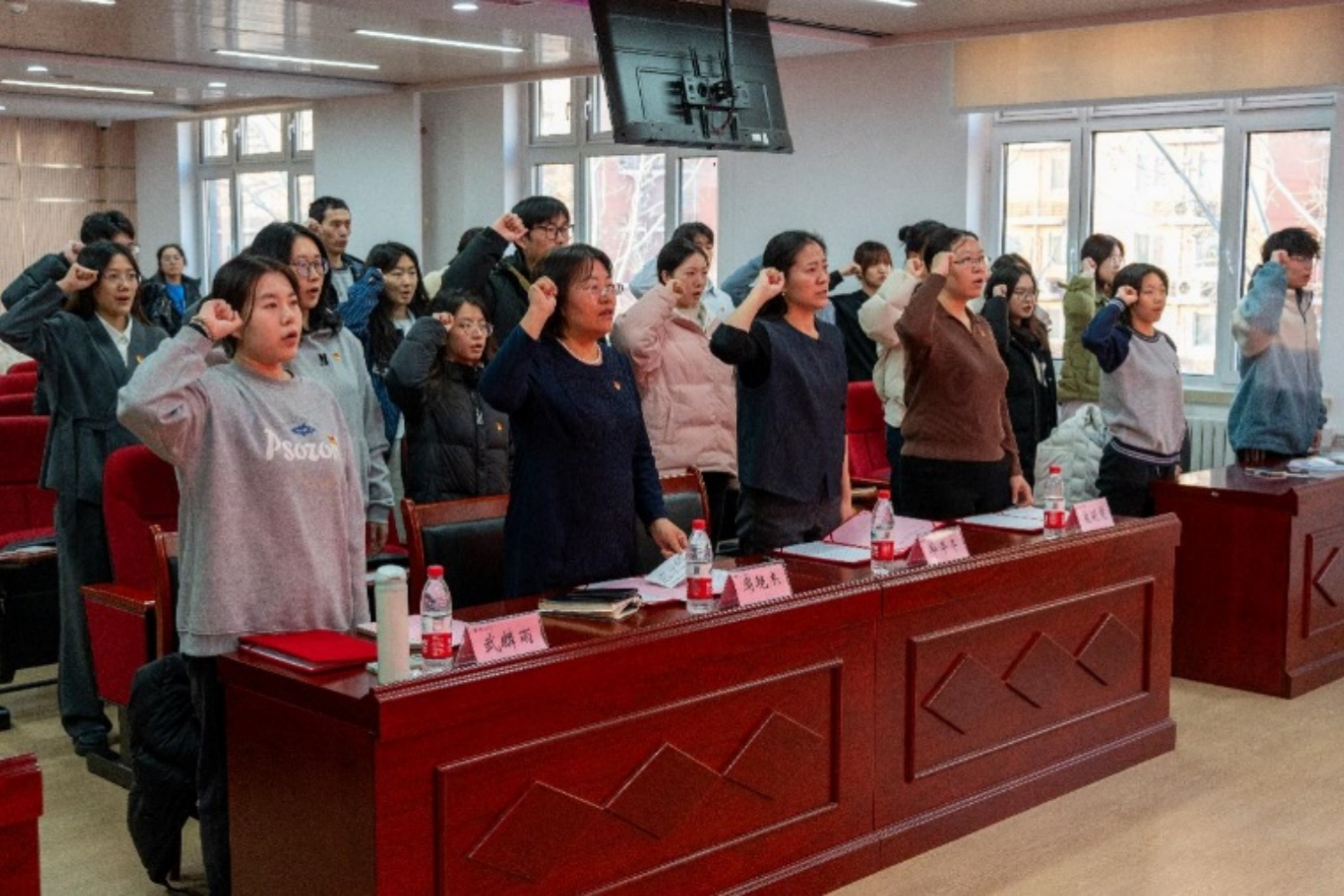 12月20日,數(shù)學與統(tǒng)計學院舉行了2024年新發(fā)展黨員入黨宣誓暨授牌儀式。學院黨委書記周艷杰、學院黨委副書記畢平平、組織員寇明雯、正式黨員代表和2024年新發(fā)展黨員參加了此次活動,儀式由組織員寇明雯主持。