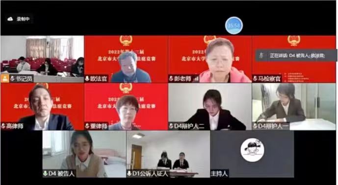 在比賽過程中,代表隊得到學院教師、校外導師、往屆隊員等多方面的支持和鼓勵。學院領導多次進行賽前的動員和鼓勵;郭紋靜、陸侃怡和李子龍三位帶隊老師數次耐心指導直至深夜;通州區人民法院蔣為杰法官、北京周泰律師事務所高級顧問曹莉就專業問題和模擬庭辯給予悉心指點;北京市朝陽區人民檢察院席曉昕檢察官、北京市豐臺區人民檢察院張莉檢察官、北京市房山區人民檢察院隗立娜檢察官、北京國浩律師事務所李豐才律師在控辯思路及文書寫作方面給予同學們的專業指導和幫助;往屆優秀隊員對參賽隊員悉心指導、日夜陪伴,幫助隊員們度過因疫情原因而不斷延長的賽程。