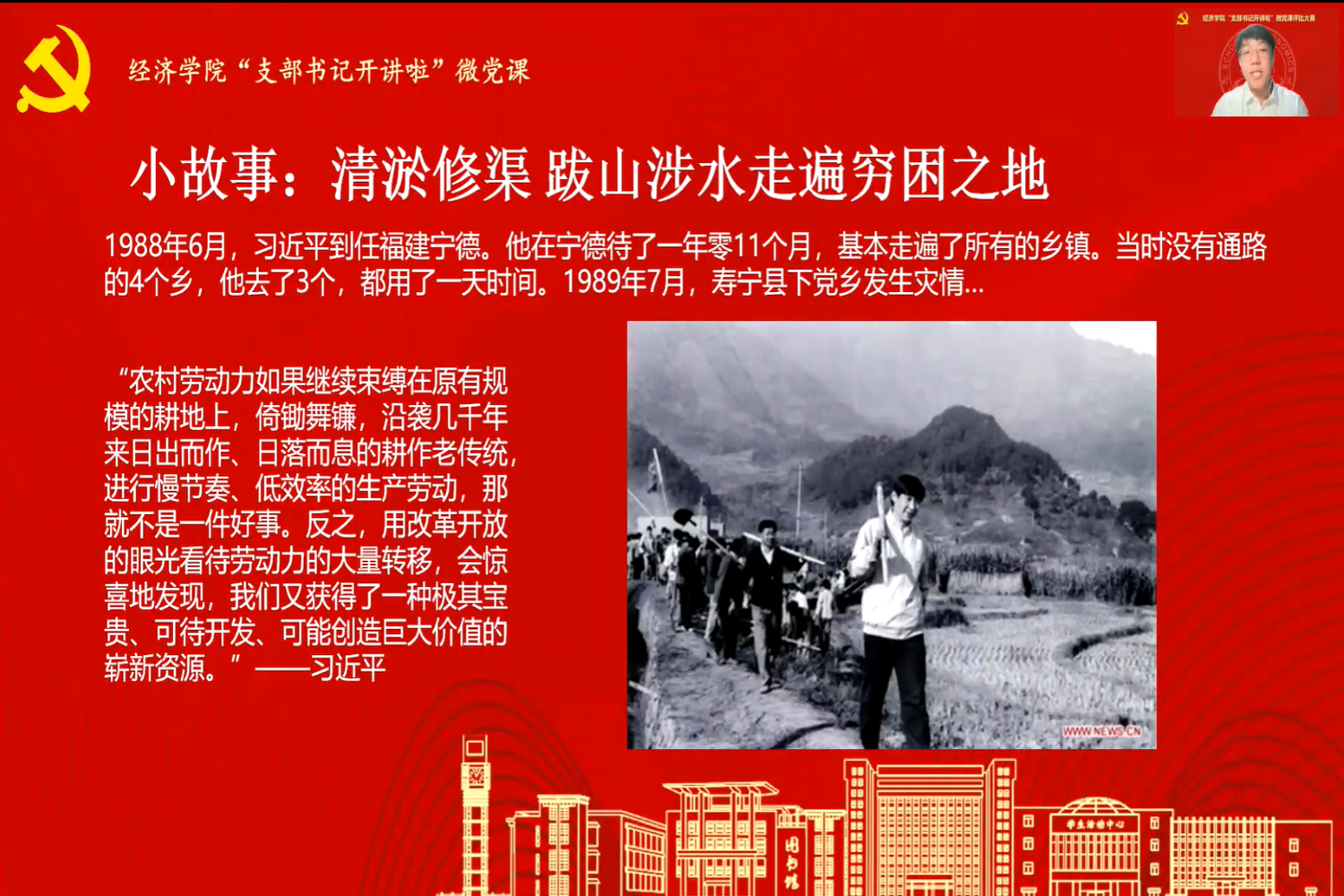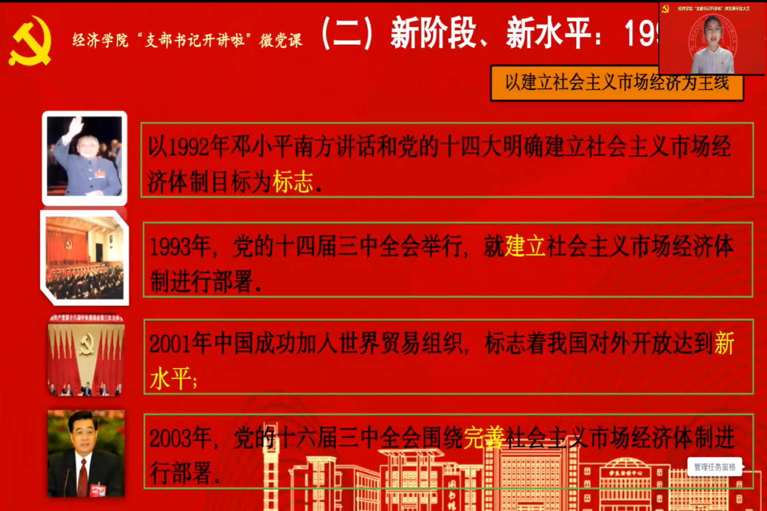 為深入學習貫徹習近平新時代中國特色社會主義思想,創新支部開展理論學習的形式,加強支部書記的理論儲備和示范引領作用,以“頭雁”風采夯實黨支部的戰斗堡壘作用,經濟學院本研學生黨支部于5月15日面向全體學生黨員及發展對象共300余人在線上開展了“支部書記開講啦”微黨課評比大賽。學校組織部副部長鄭光,學生處副處長蓋曉慶,經濟學院黨委書記呂素香、黨委副書記李艷春、專職組織員、團委書記及全體學生工作輔導員擔任評委。