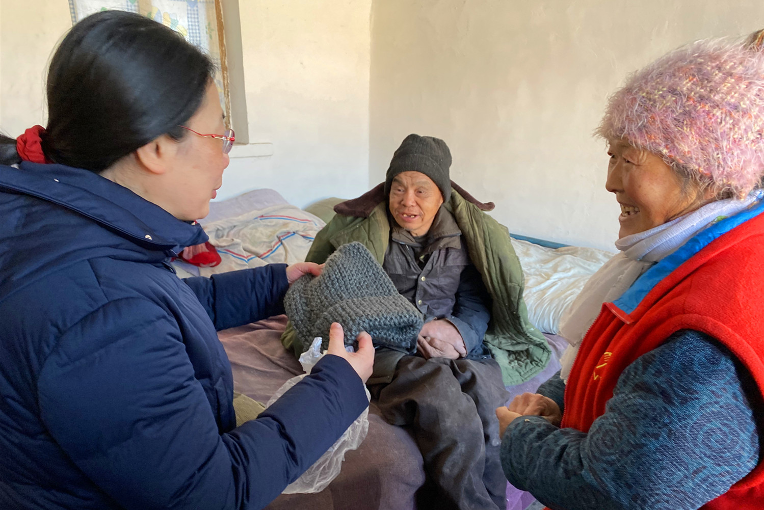 村民冷暖放心頭,寒冬送暖蘊真情。12月21日,離退休黨委書記王紅英帶領退休第十四支部黨員代表,前往房山區南窖鄉中窖村,向受災村民捐贈我校離休干部李育手工編織的帽子100頂,并看望村里的五保戶,為受災村民送去溫暖和災后重建的祝福。
