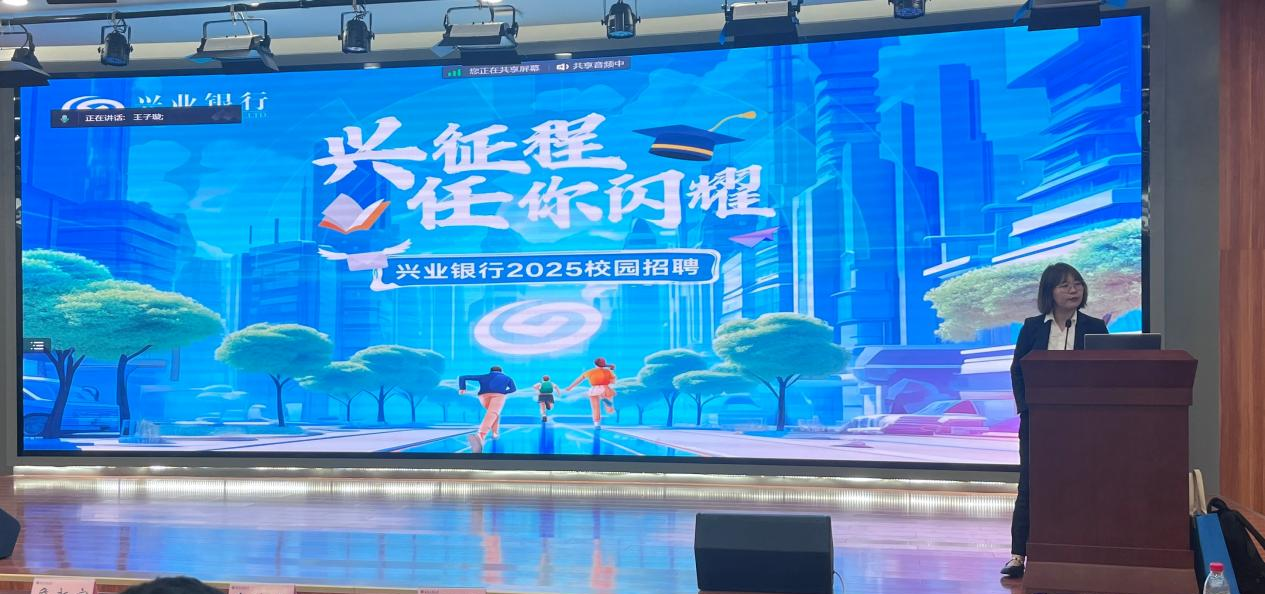 寧波銀行代表和興業銀行代表分別介紹企業概況、招聘崗位和招聘流程等多方面內容,以其各自特色的企業文化和產品特色,結合當下市場的發展趨勢,向同學們全面展示了銀行的品牌價值和金融實力。此外,兩家銀行著重介紹了新員工加入后的職業發展路徑、內部晉升機制等等,充分展現了兩家銀行對于員工能力的成長與團隊融入的高度重視。
