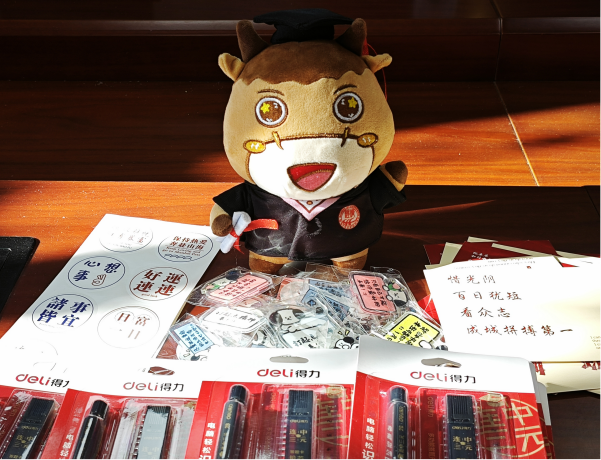 學院2021級輔導員衛一潤、王子璇與志愿者共同為200余位考研學子打包“考研冬日暖心禮包”,為學子們帶來溫暖,傳遞學院對同學們的祝福。每份禮包由“連中三元”涂卡四件套、“勵志奮發”亞克力立牌、“萬事如意”祝福明信片組成,用一份份沉甸甸的祝福與希冀為考研學子助力,祝愿奔赴考場的大家都能旗開得勝、前程似錦。