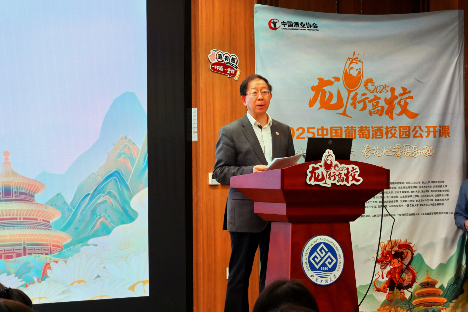 3月12日,由北京工商大學(xué)與中國酒業(yè)協(xié)會葡萄酒分會聯(lián)合主辦的“龍行高校”2025中國葡萄酒校園公開課第一課正式開講。副校長劉艷楠,中國工程院院士、北京工商大學(xué)國酒研究院院長孫寶國,中國酒業(yè)協(xié)會黨支部書記、執(zhí)行理事長王琦,中國酒業(yè)協(xié)會葡萄酒分會秘書長火興三,貴州茅臺酒廠(集團)昌黎葡萄酒業(yè)有限公司總工程師段雪榮出席公開課。啟幕儀式由食品與健康學(xué)院院長王彥波主持。