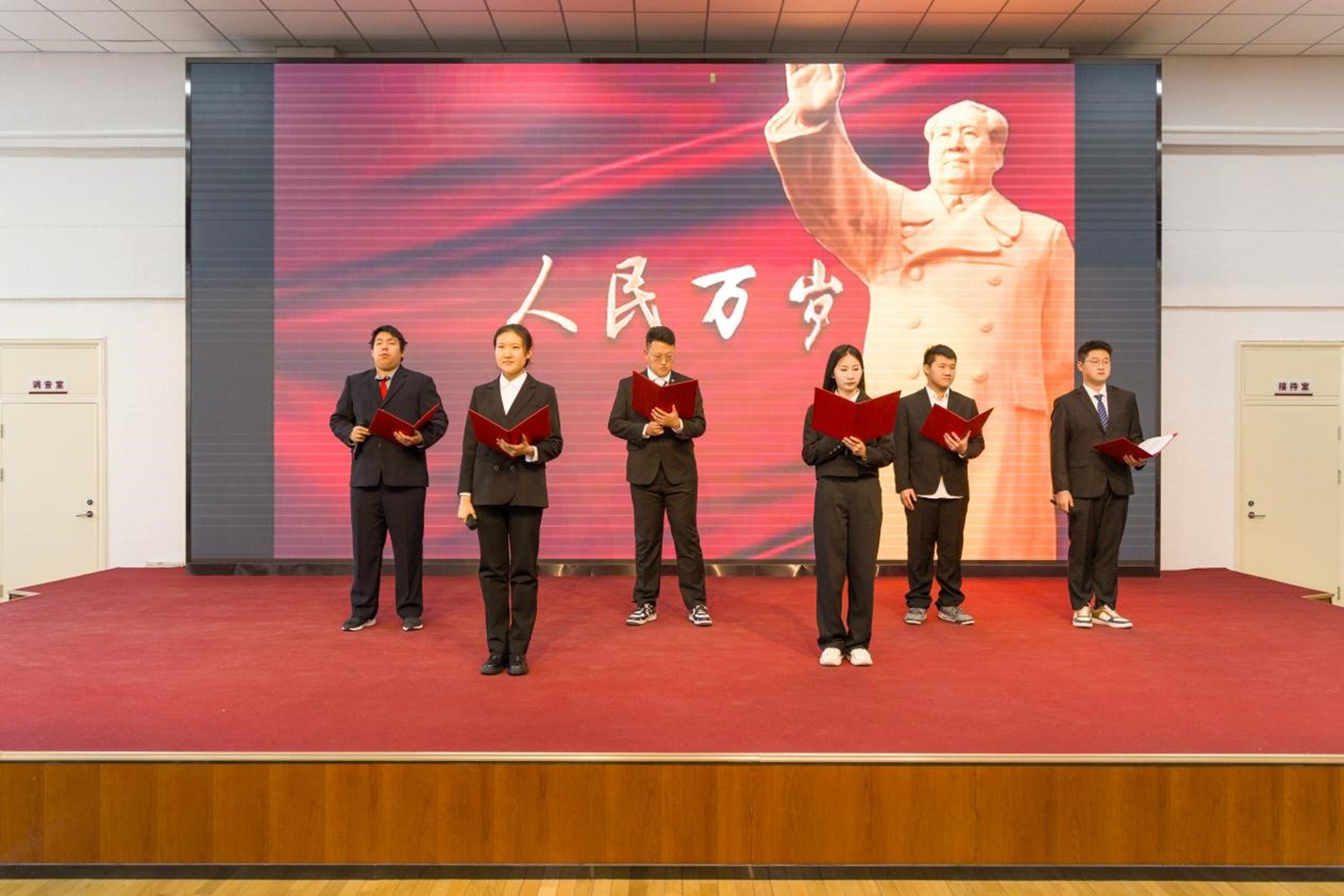 數學與統計學院學生董奕悅、王雨佳、丁浩東 、程耀星、李秭佳、魏一德精心準備,為同學們帶來詩歌朗誦《沁園春·雪》《人民萬歲》。
