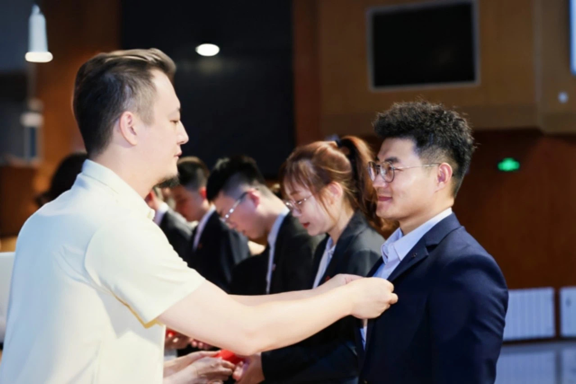 商學院領導為新生代表佩戴院徽,愿每一位新商院學子心中裝滿對國家的深情厚意,接續(xù)前輩的奮斗之火,砥礪前行,無畏挑戰(zhàn),勇攀科學與知識的巍峨高峰。