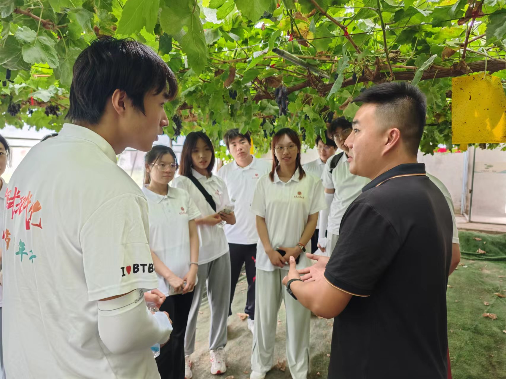 在利思田園蜜語農(nóng)業(yè)生態(tài)產(chǎn)業(yè)園和火集村蔬菜種植基地,實踐團成員通過采訪、問卷等形式與酒莊負(fù)責(zé)人、村支書等交流,深入了解現(xiàn)代立體栽培種植、魚菜共生、數(shù)字農(nóng)業(yè)等現(xiàn)代化農(nóng)業(yè)科技的運用和“聯(lián)產(chǎn)單干”模式的生動實踐。實踐團成員紛紛表示現(xiàn)代智能技術(shù)的加持,傳統(tǒng)農(nóng)業(yè)在賦能增效中不斷實現(xiàn)新質(zhì)生產(chǎn)力“量質(zhì)雙升”。
