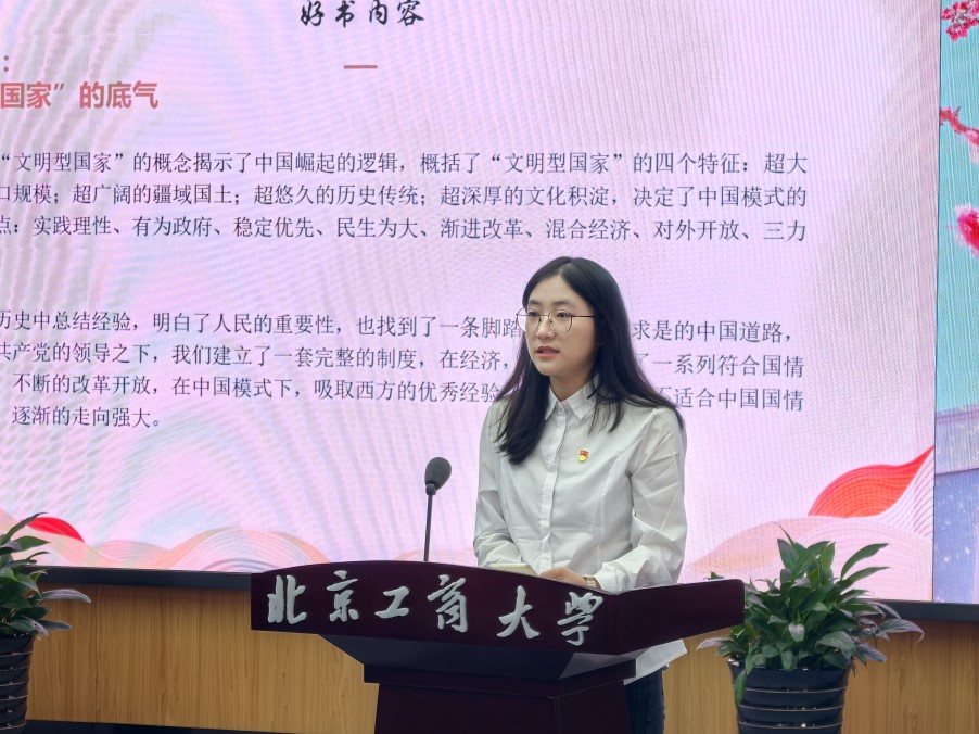 在紅色經典圖書捐贈與閱讀推廣人聘任環節中,離退休黨委書記王紅英、商學院黨委書記樊江濤共同為學生代表贈送了紅色經典圖書。學生黨員們表示會好好珍惜這份珍貴的禮物,深入學習紅色經典,汲取奮進力量。圖書館直屬黨支部書記徐美葉為北京工商大學首批閱讀推廣人頒發聘書,感謝他們為書香校園建設做出的貢獻,希望今后有更多老師同學加入到閱讀推廣人的隊伍中來。