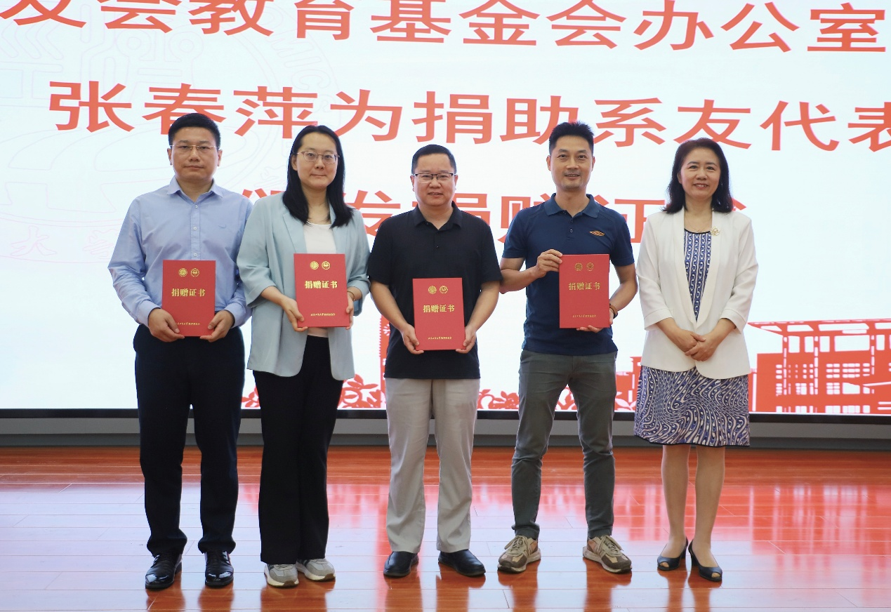 學(xué)校校友會教育基金會辦公室主任張春萍為捐贈系友代表頒發(fā)捐贈證書和紀(jì)念品,以感謝他們對母校教育的反哺。