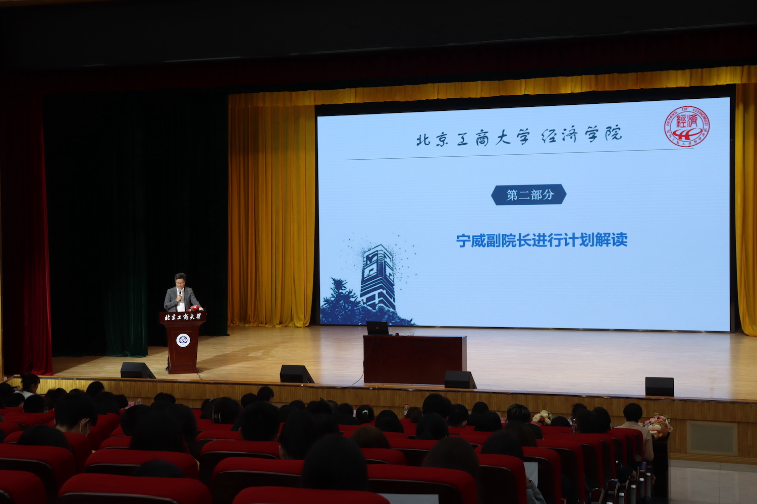 為幫助2021級本科新生順利完成角色的轉換,激發學習主動性、積極性,促進學業提升,營造學院良好的學習風氣,10月13日,“經英筑夢計劃——經濟學院2021級新生學業適應性教育啟動儀式”在良鄉主校舉行。經濟學院黨委書記呂素香、副院長寧威、胡俞越教授、各系教師代表、新生輔導員、本科教學秘書及全體2021級新生共計400余人出席活動。啟動儀式由學院黨委副書記李艷春主持。