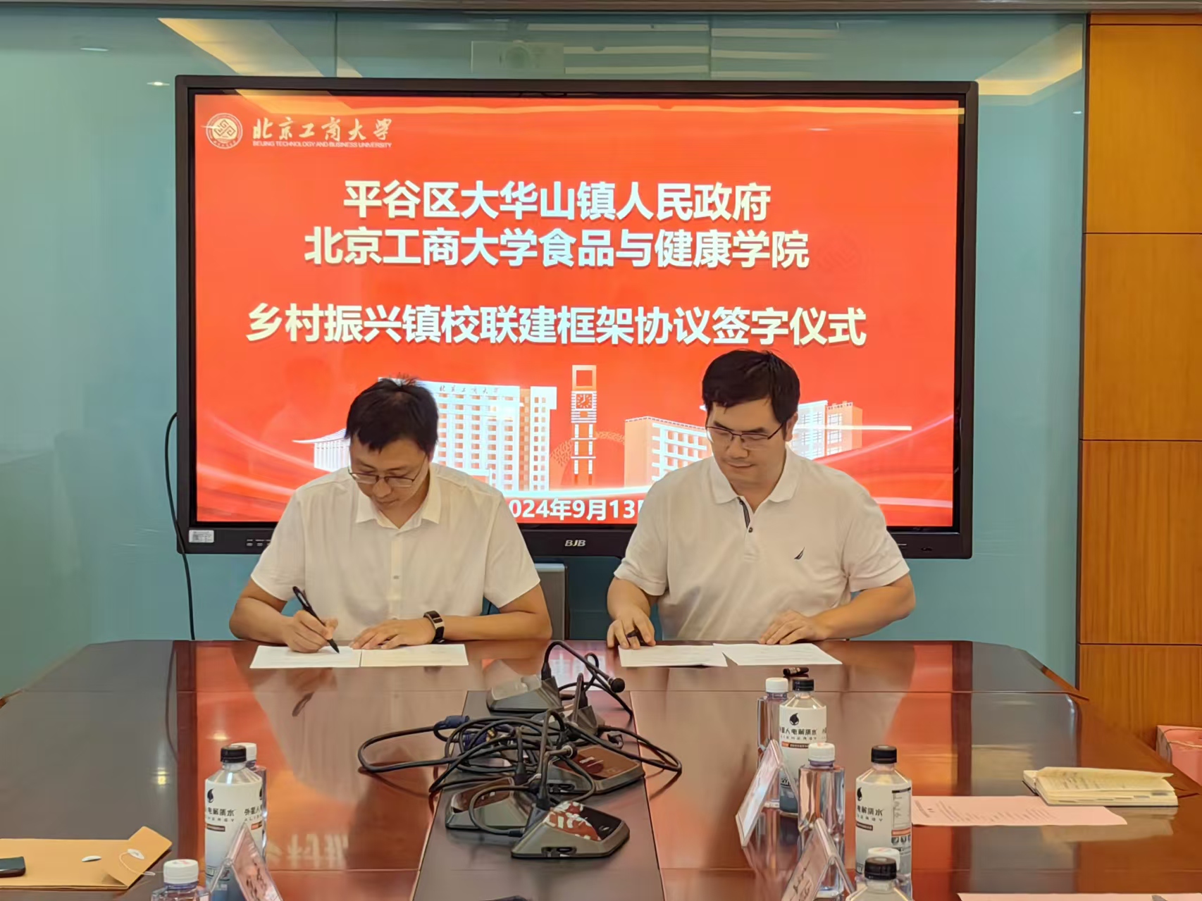 為深入學(xué)習(xí)貫徹習(xí)近平總書記重要講話精神,全面推進(jìn)鄉(xiāng)村振興戰(zhàn)略實(shí)施,9月13日,北京工商大學(xué)食品與健康學(xué)院、平谷區(qū)大華山鎮(zhèn)聯(lián)合簽訂鎮(zhèn)校聯(lián)建框架協(xié)議。大華山鎮(zhèn)鎮(zhèn)黨委書記王斌、組織部部長(zhǎng)張建、小裕子村書記閆洪,學(xué)院黨委書記鄭喜姣、副院長(zhǎng)李健、組織員李娜、團(tuán)委書記朱晨晨共同出席簽約儀式暨座談會(huì)。